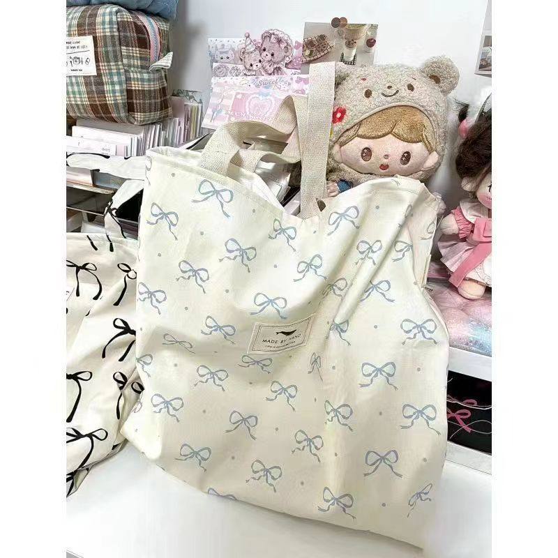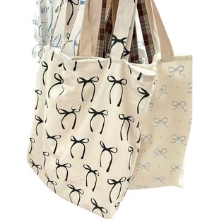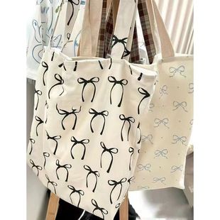 春夏季 韩风ins蝴蝶结帆布包学生复古大容量游玩度假手提袋单肩包