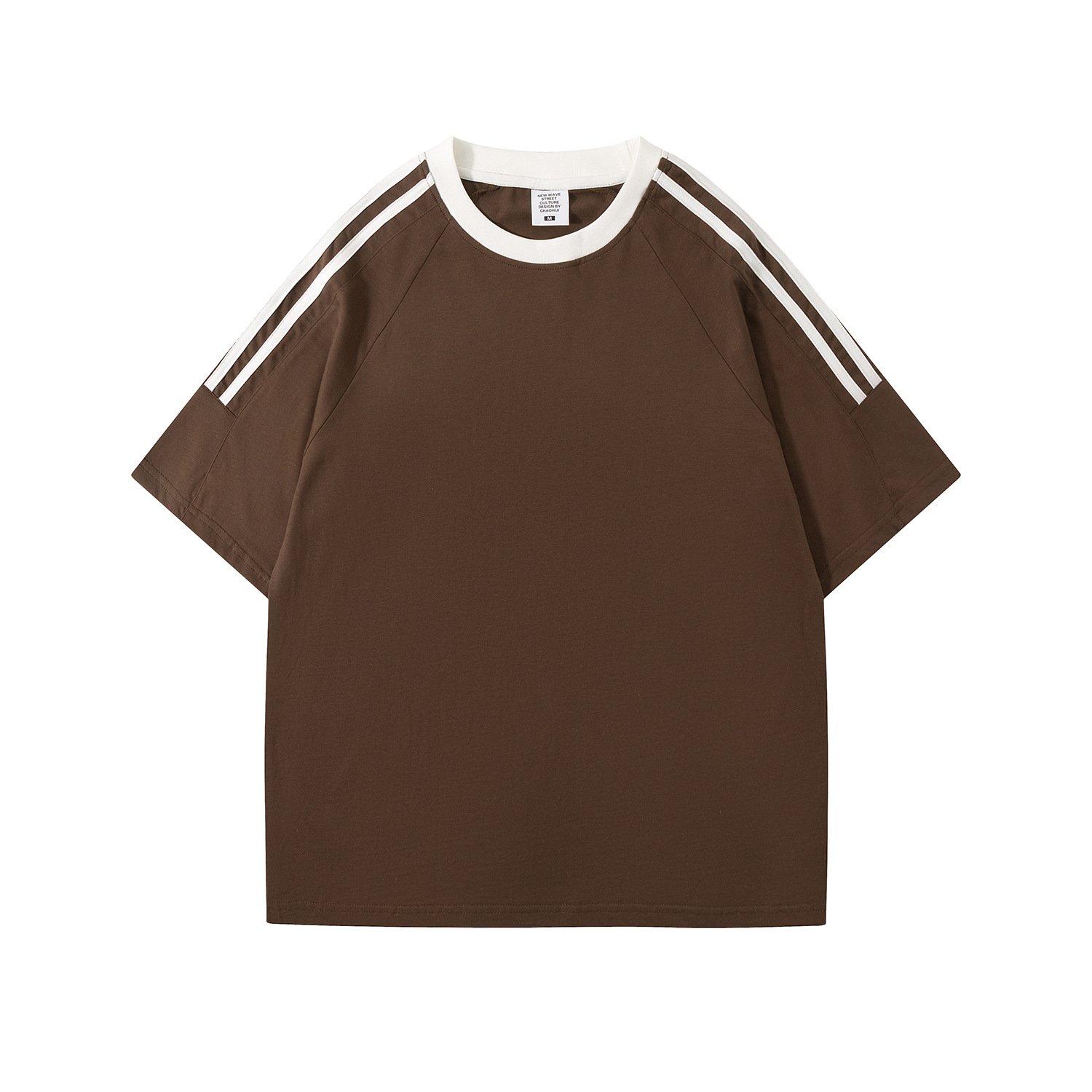 休闲百搭上衣美式 210g凉感纯棉三条杠落肩短袖 复古T 新款 夏季