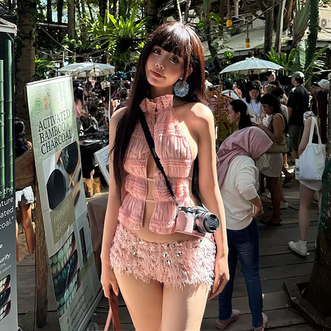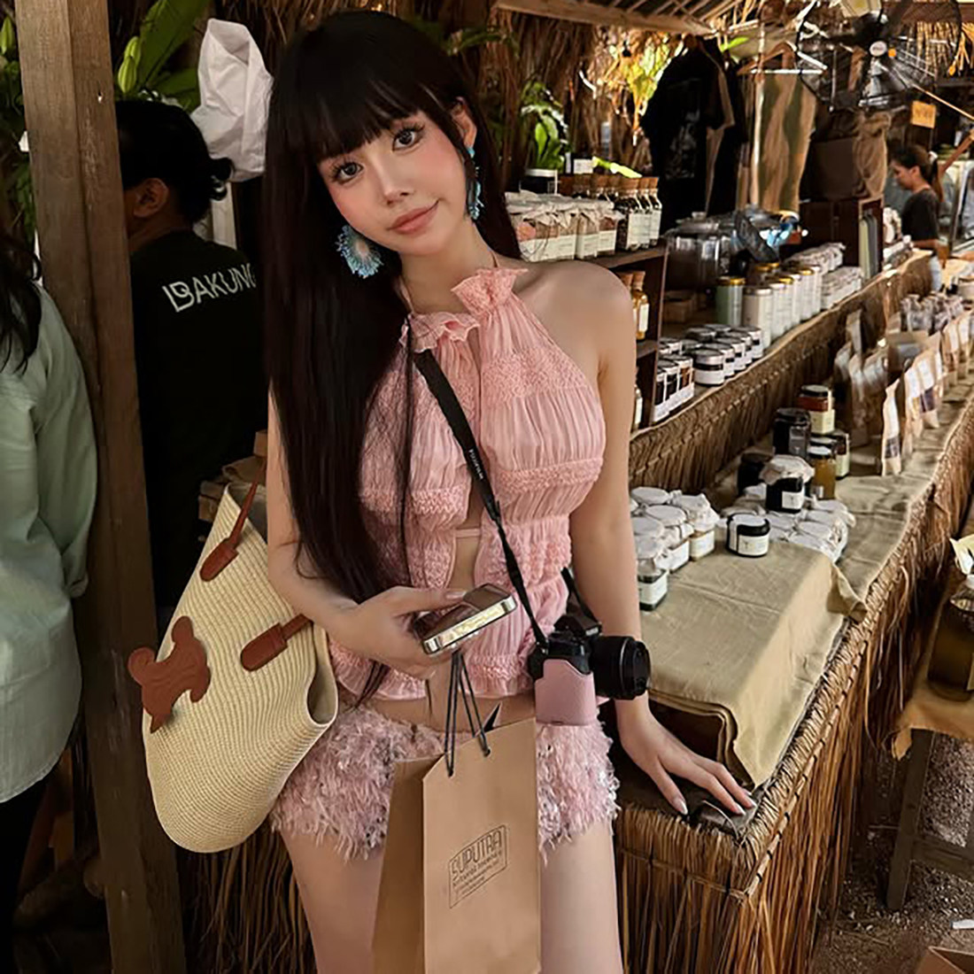 套装 SylCue性感辣妹度假风粉色气质减龄性感镂空无袖 背心百搭短裤