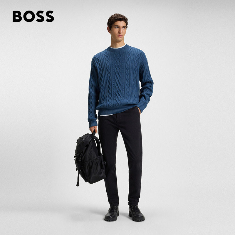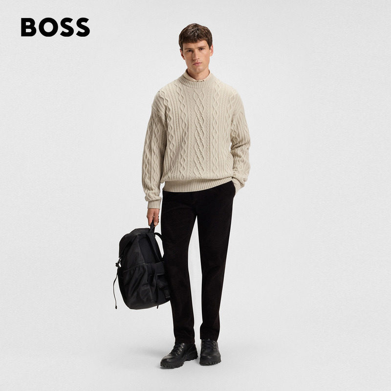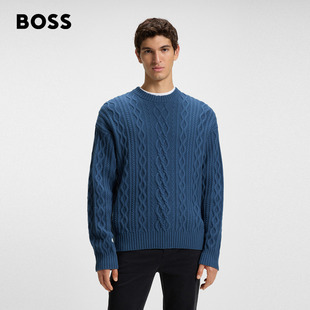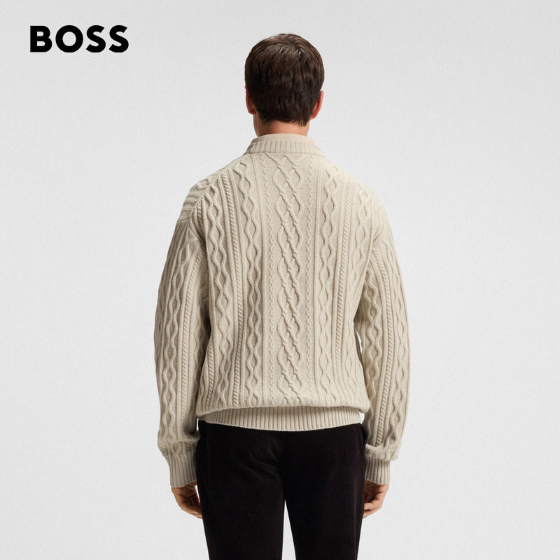 BOSS博斯 男士 25年冬季 宽松版 100%羊毛 新款 型毛衣 复古风绞花