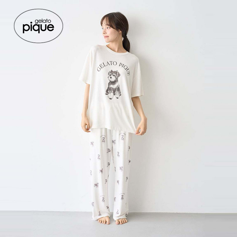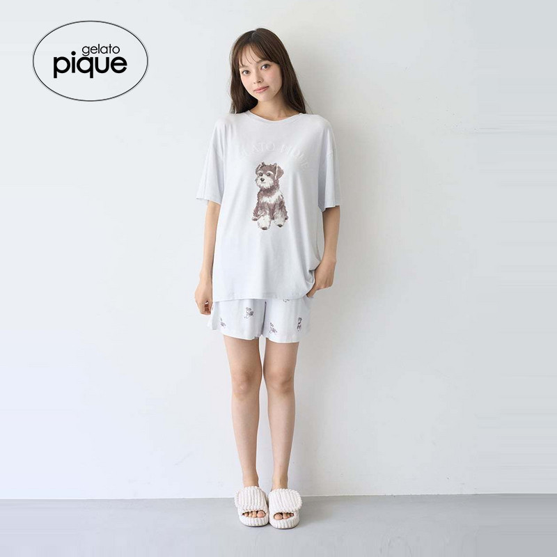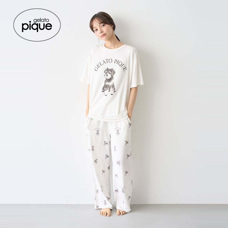 T恤睡衣PWCT254311 女雪纳瑞印花短袖 gelato pique25秋冬新品