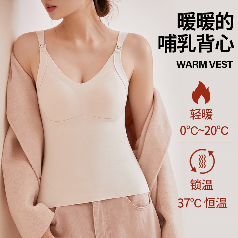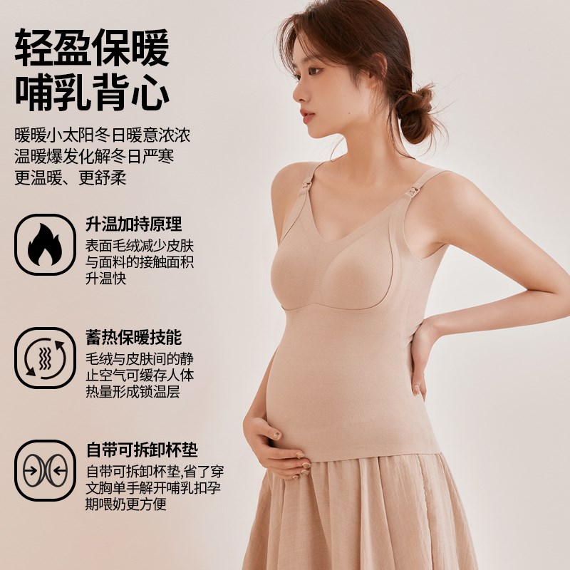 孕妇哺乳内衣秋冬打底保暖吊带文胸背心睡觉可穿一体式 喂奶月子服