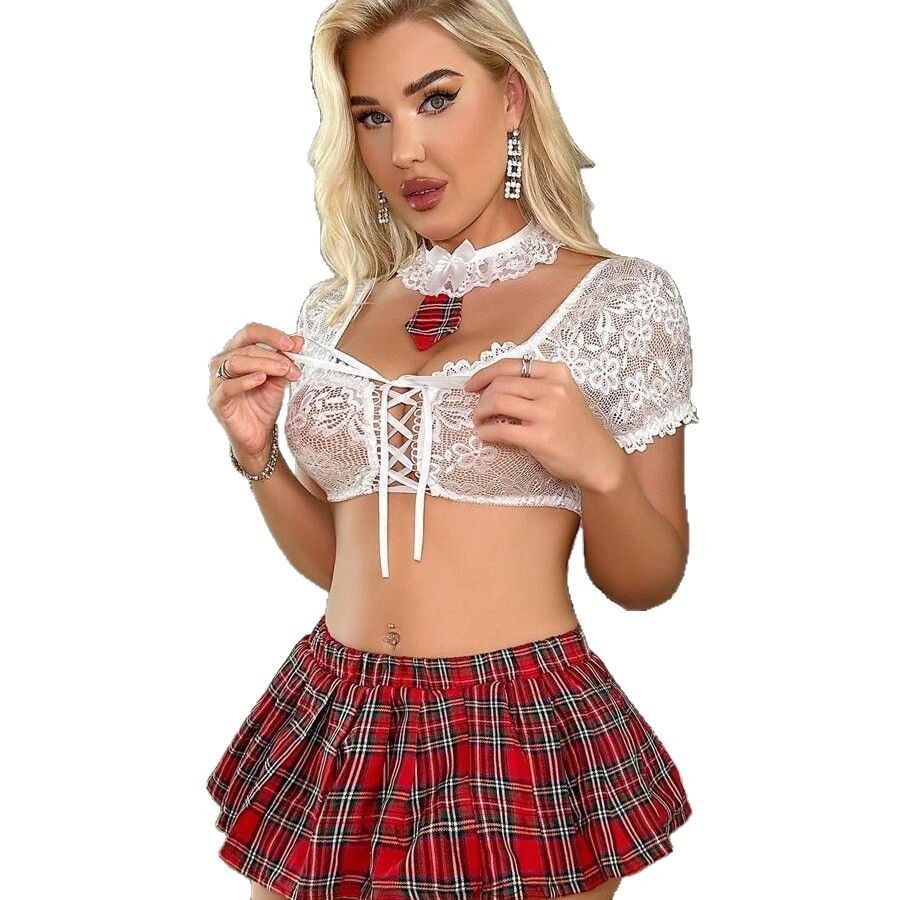short top playing lingerie set女 role lace skirt Sexy plaid