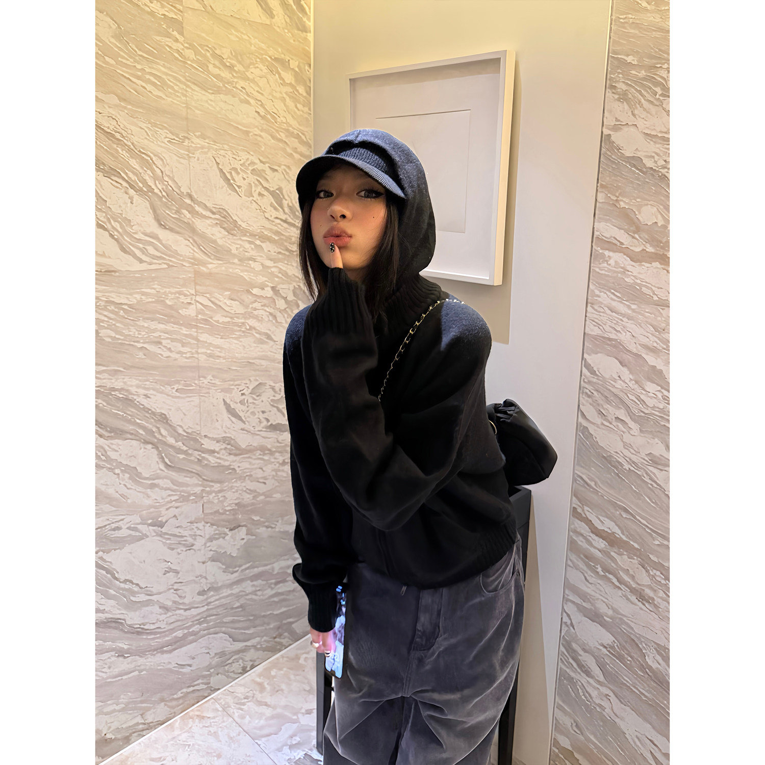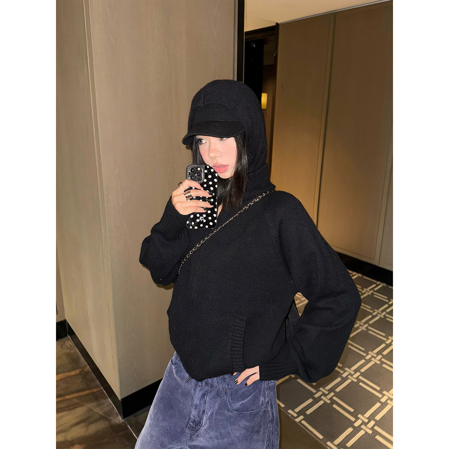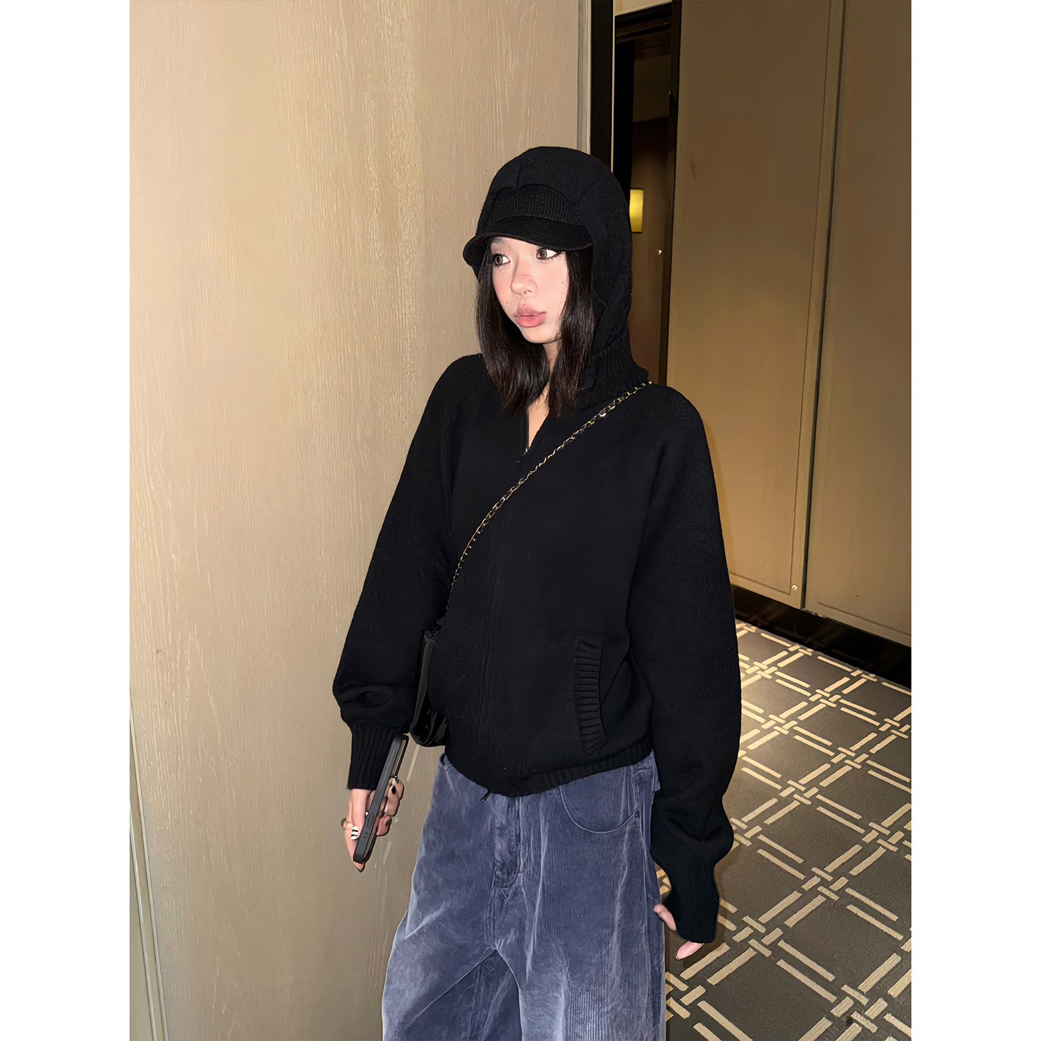 男女情侣宽松休闲拉链开衫 复古cleanfit连帽针织衫 毛衣 美式 F383