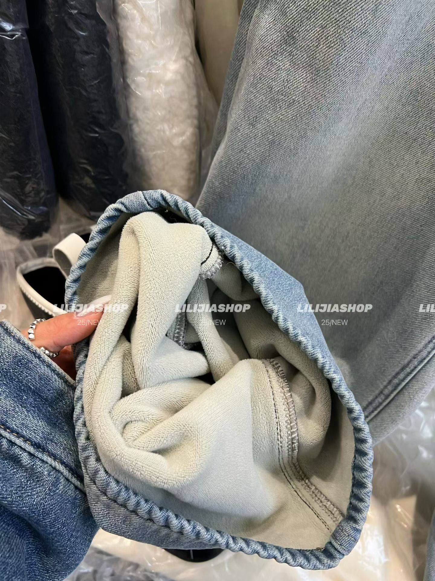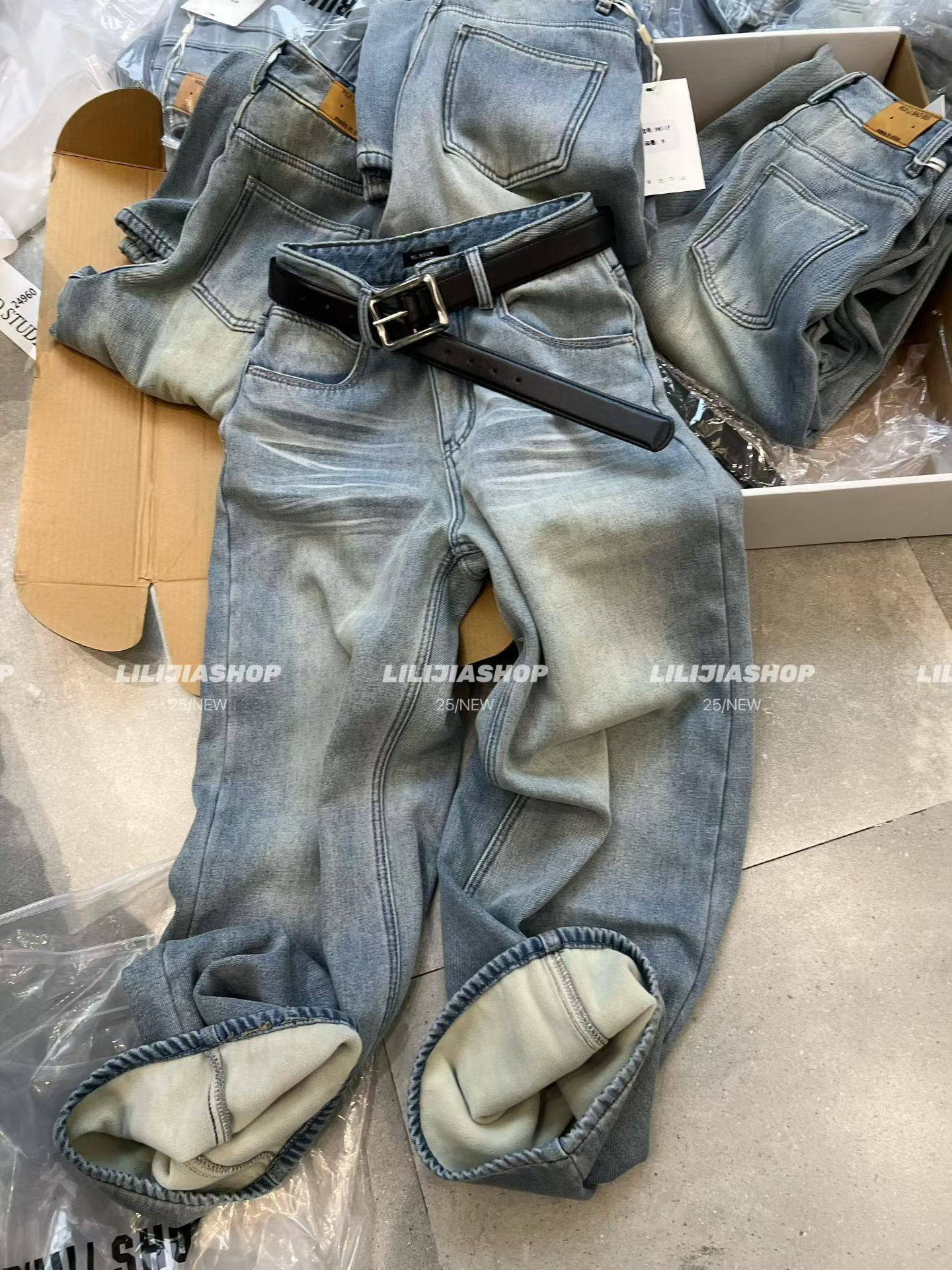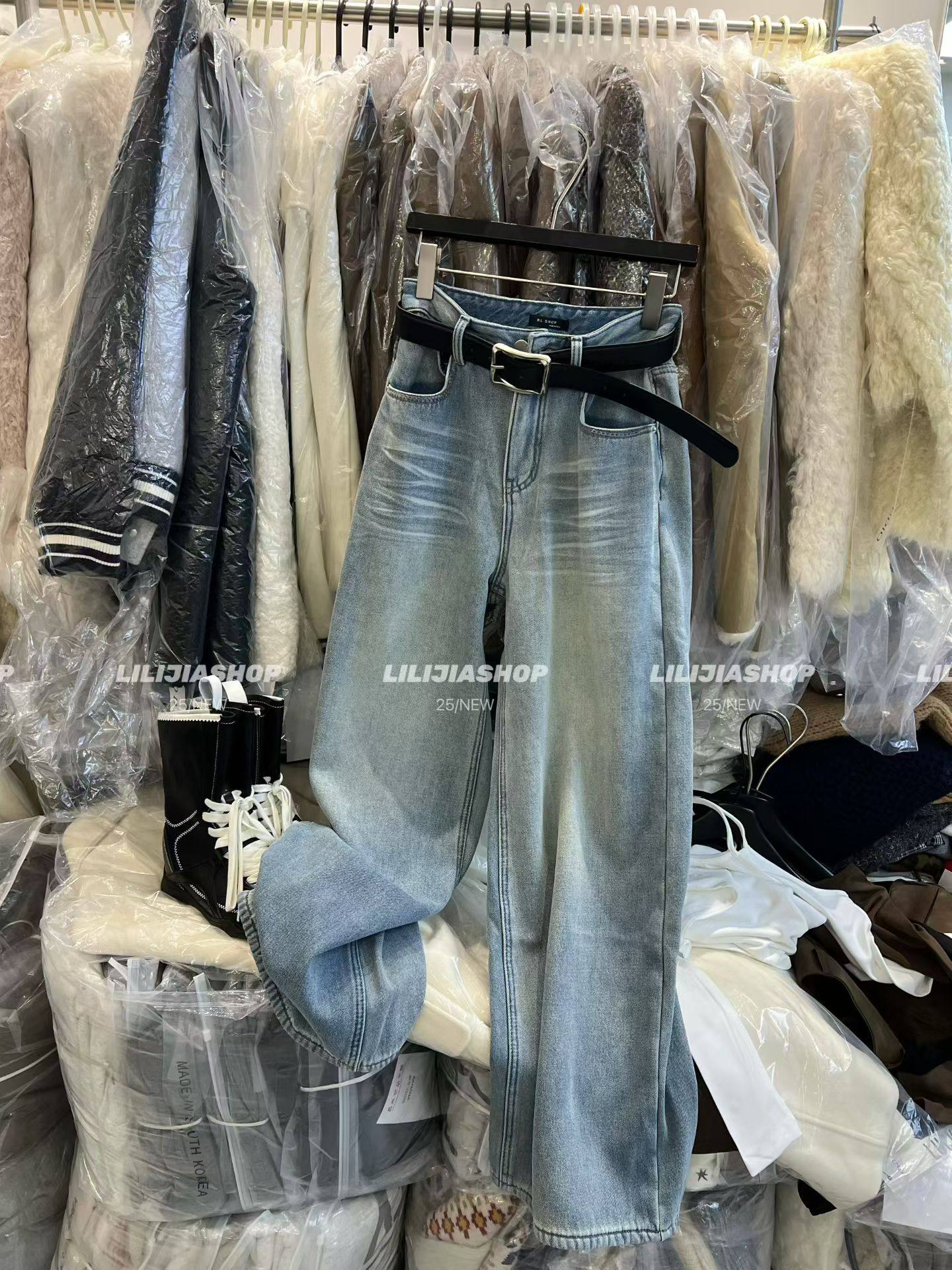 百搭宽松显瘦高腰加绒直筒牛仔裤 Miss家 时尚 韩版 女 2025秋冬新款