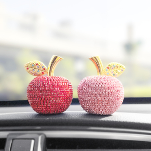 水晶镶钻创意苹果汽车高档车内装 饰中控台用品车载礼品摆件平安
