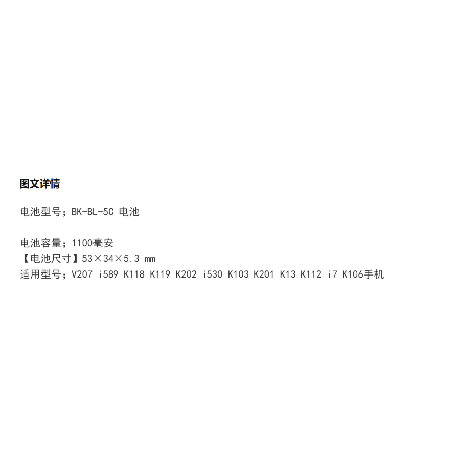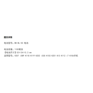 K119 k202 i530 适用步步高V207电池 K118 电板BK 5C电池 i589