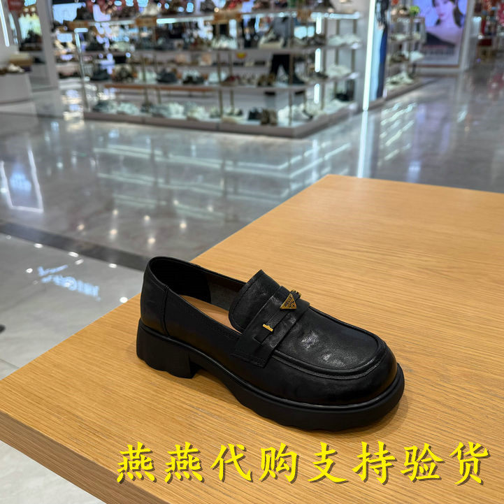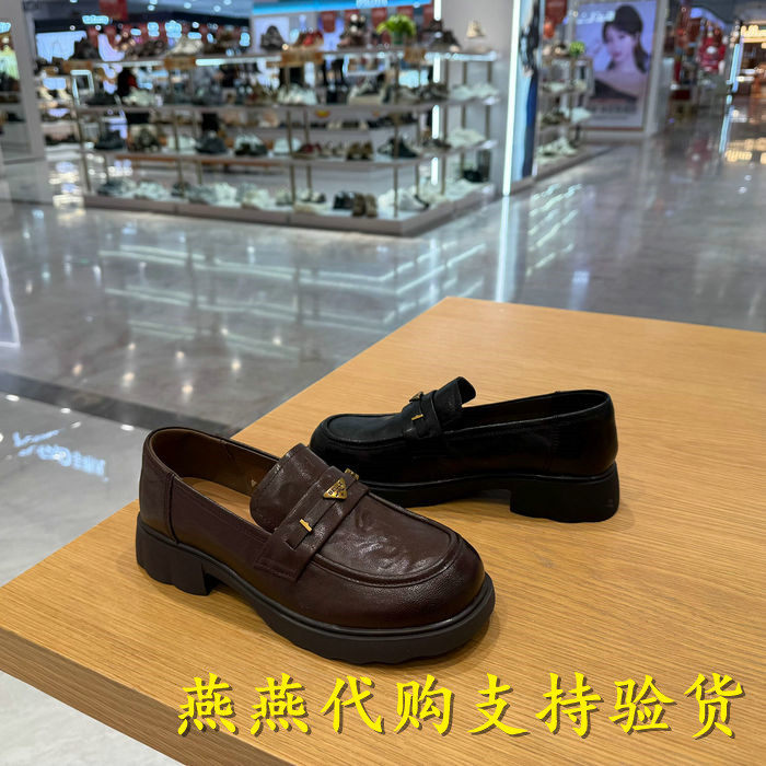 百丽2026春季 褶皱一脚蹬乐福鞋 新款 复古单鞋 E9L1DAA6 女鞋 专柜正品