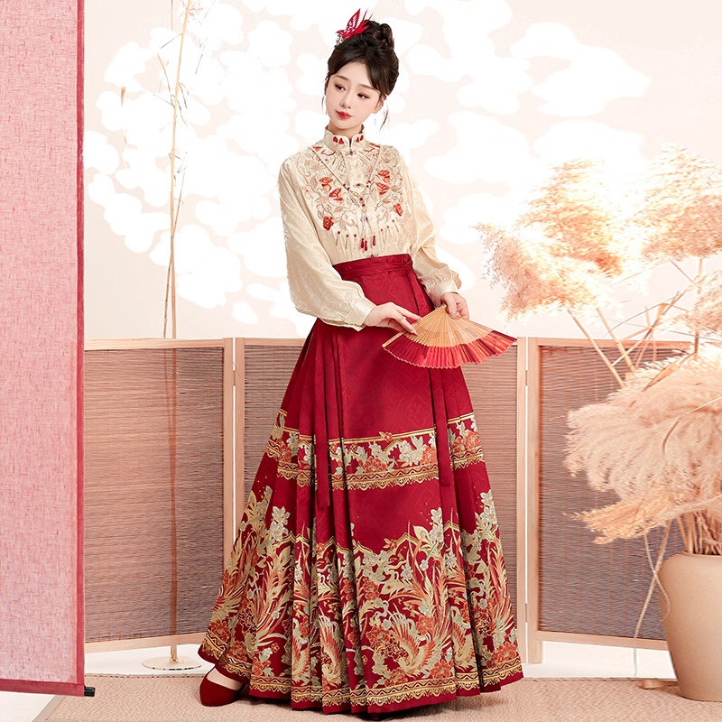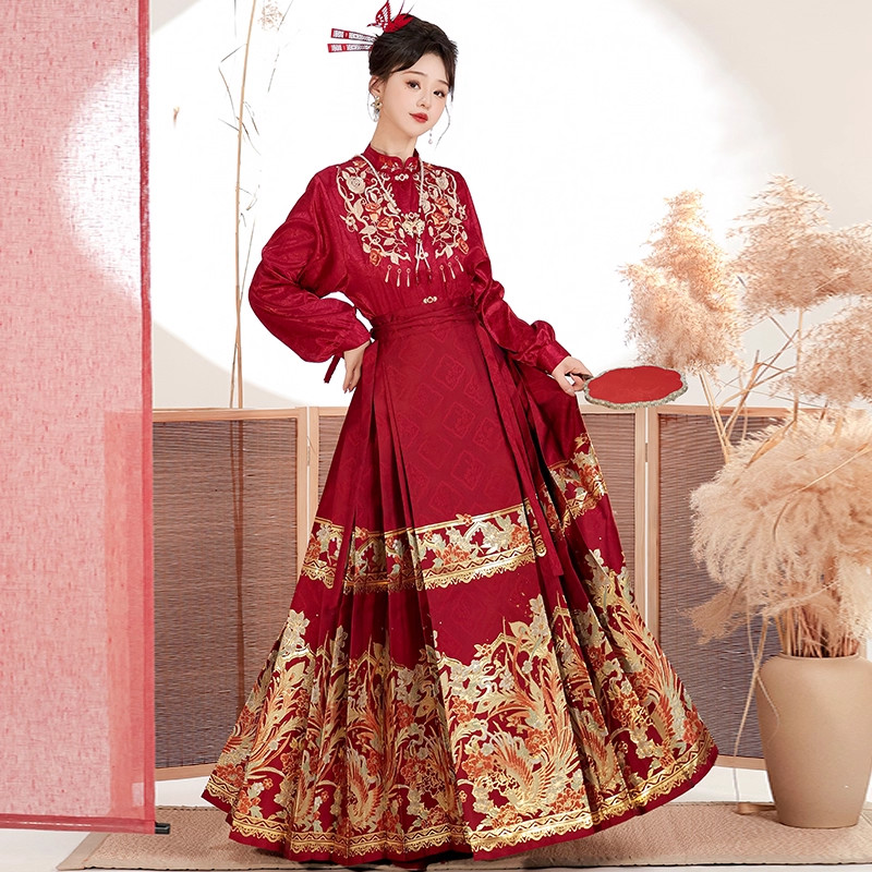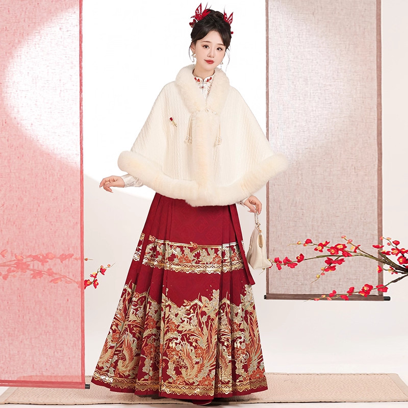 订婚新娘敬酒服婚服 2025织金马面裙套装 凤羽汉服女新中式 斗篷冬装