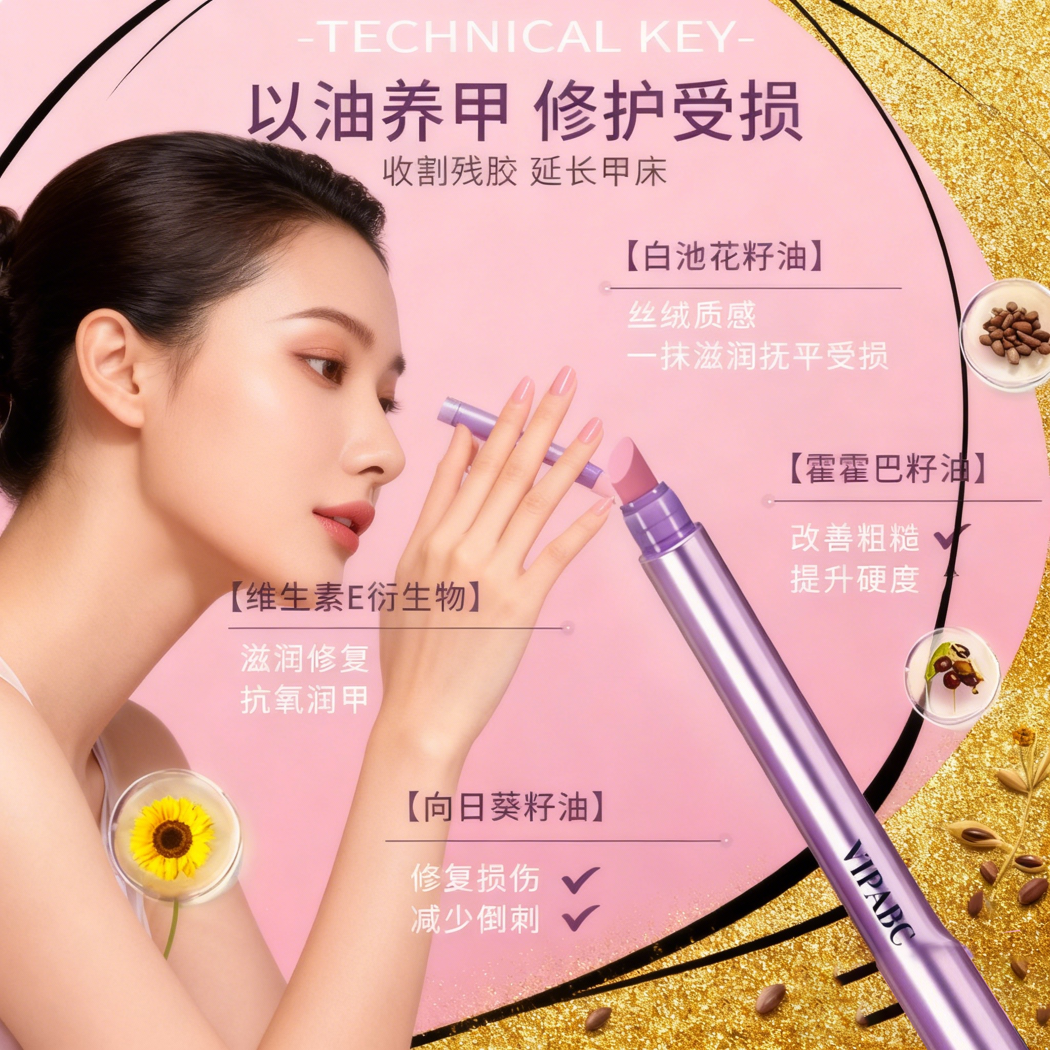 三合一美甲精华笔去死皮修甲护甲指缘油营养液受损护理油防断裂