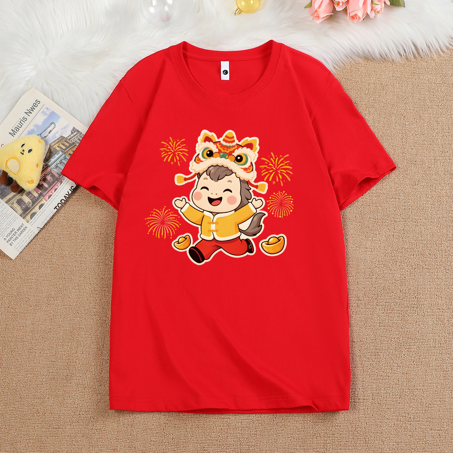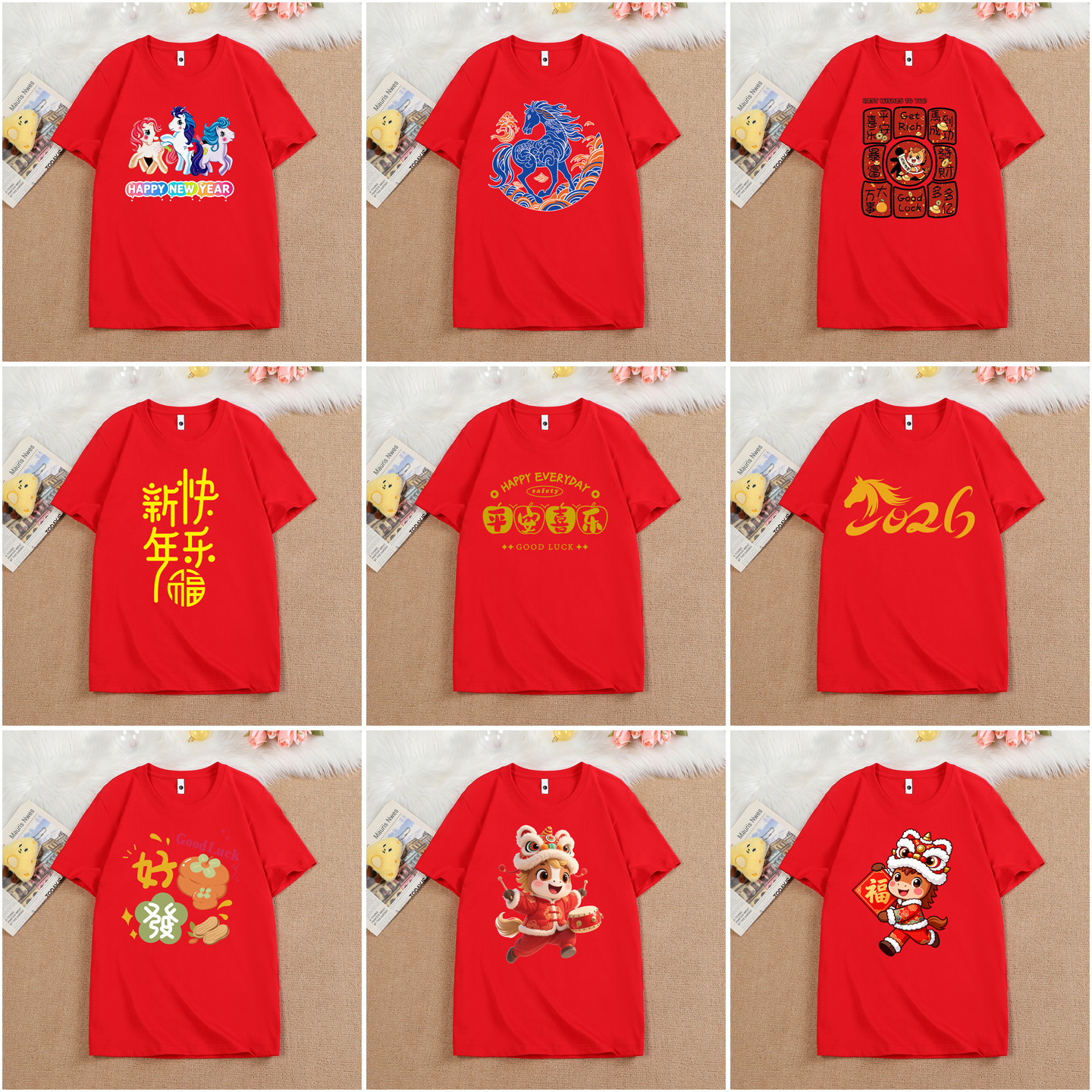 2026马年亲子装 T恤 一家三四口全家庭过年聚会新年拜年服纯棉短袖