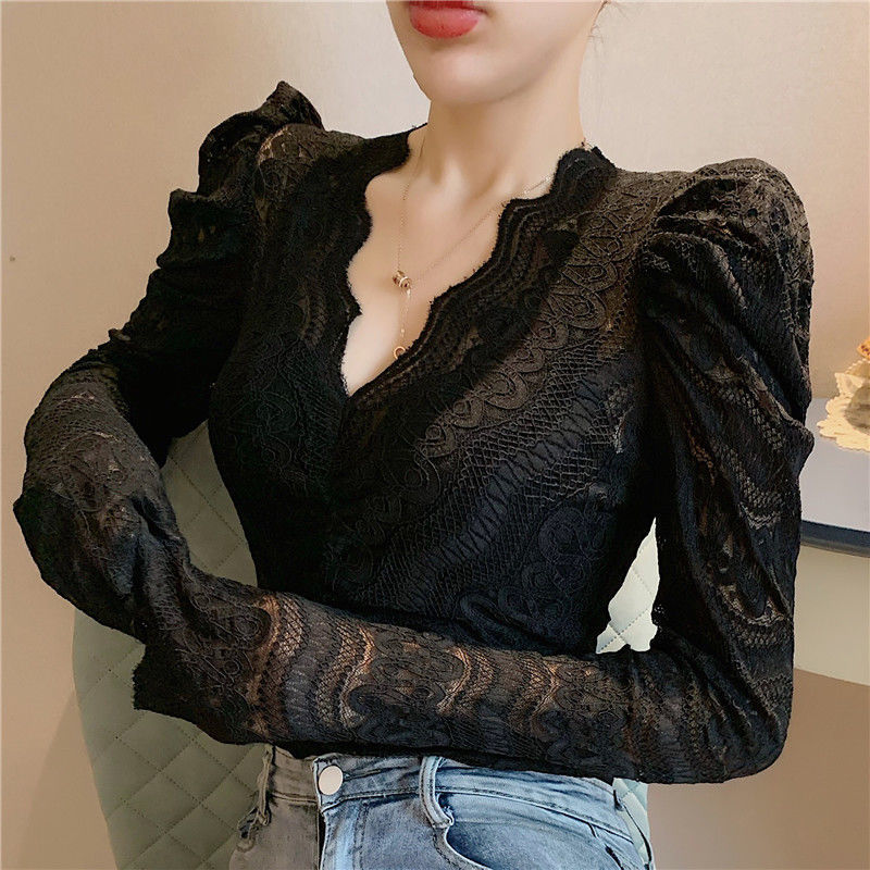 内搭上衣气质百搭雪纺蕾丝衬衫 女洋气时尚 打底衫 加绒加厚秋冬新款