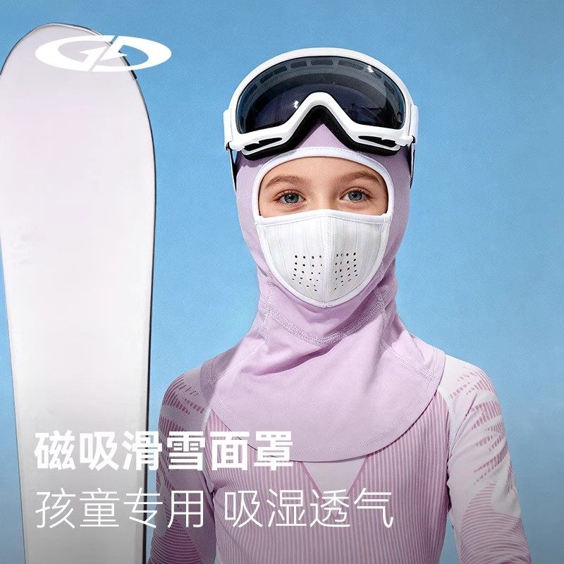 儿童滑雪面罩保暖男童户外磁吸护脸速干头盔头套冬季 女童防风护具
