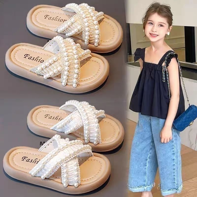 子韩版 女童凉拖鞋 小女孩宝宝防滑公主鞋 新款 珍珠外穿 2025夏季