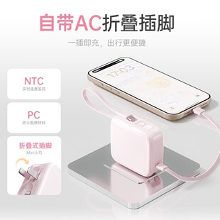 3C认证沃品三合一小方糖充电宝自带插头双线超级快充便携移动电源