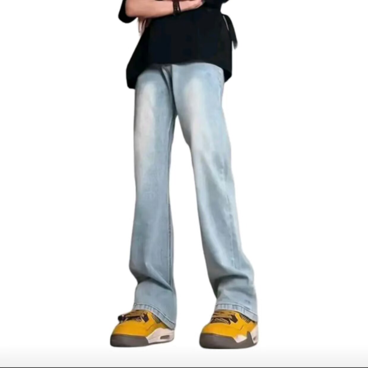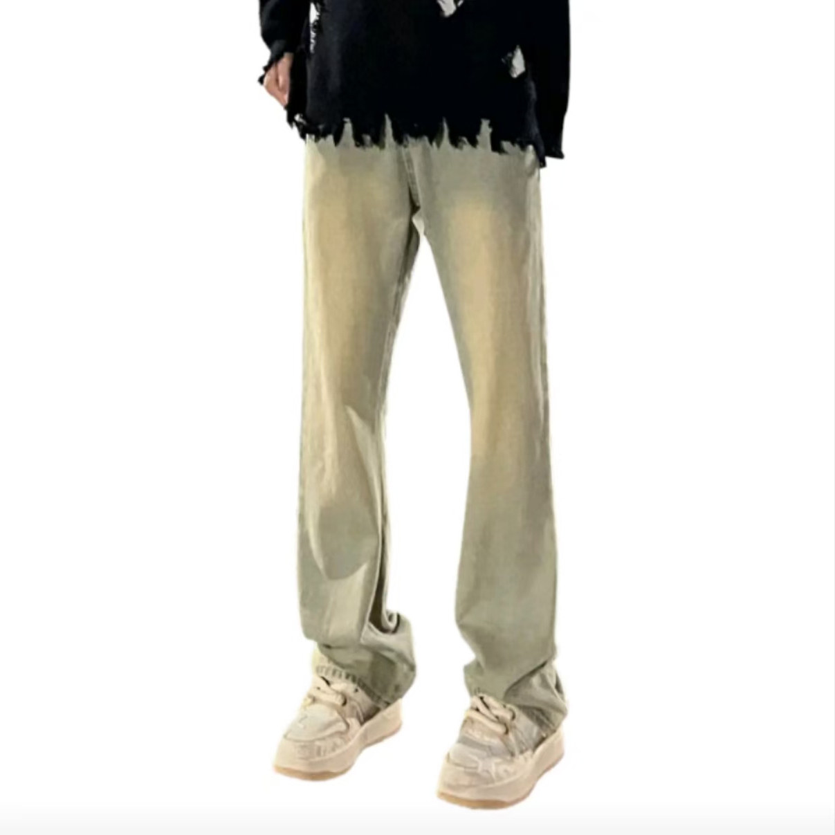 ZY740 水洗做旧废土风微喇阔腿F21 美式 直筒垂感修身