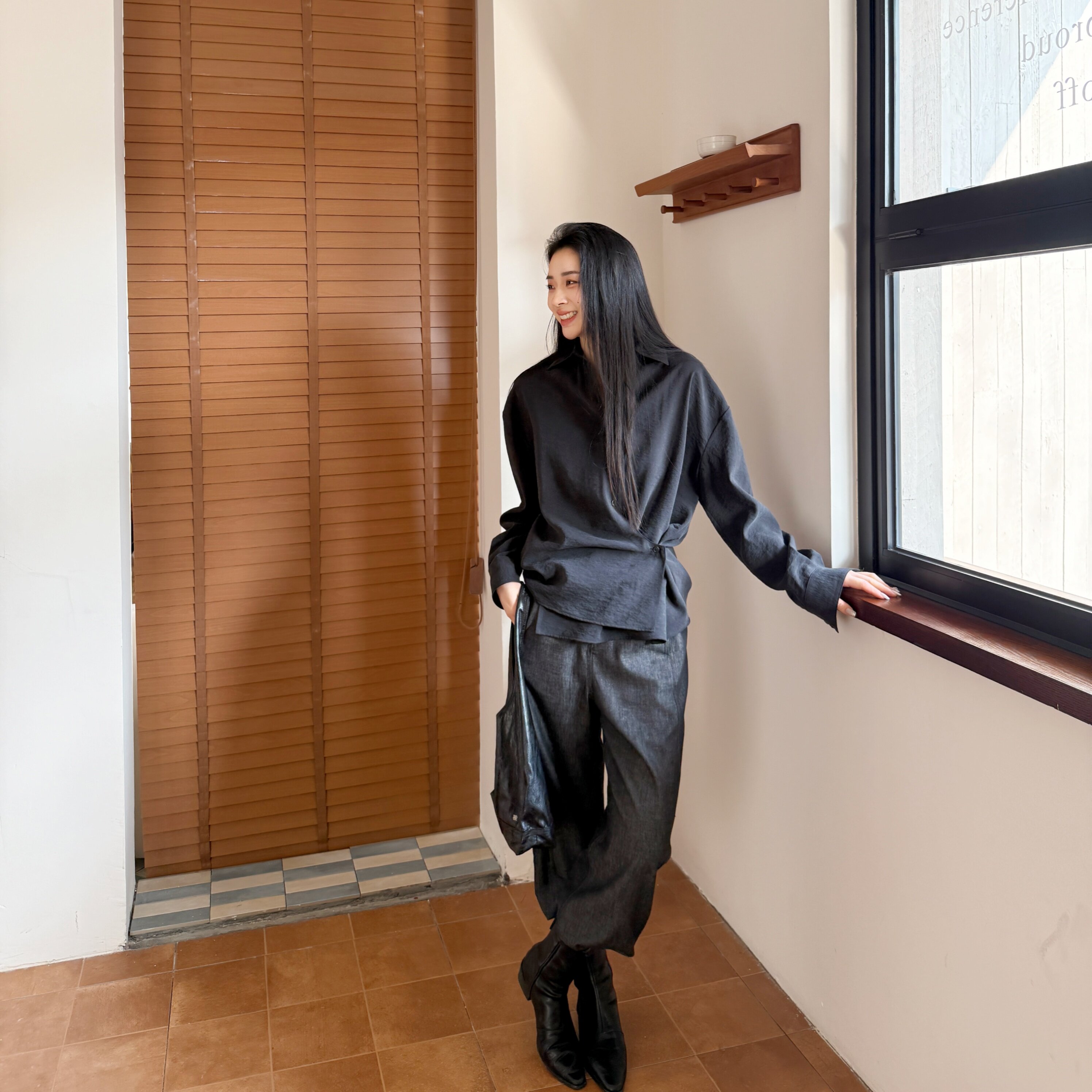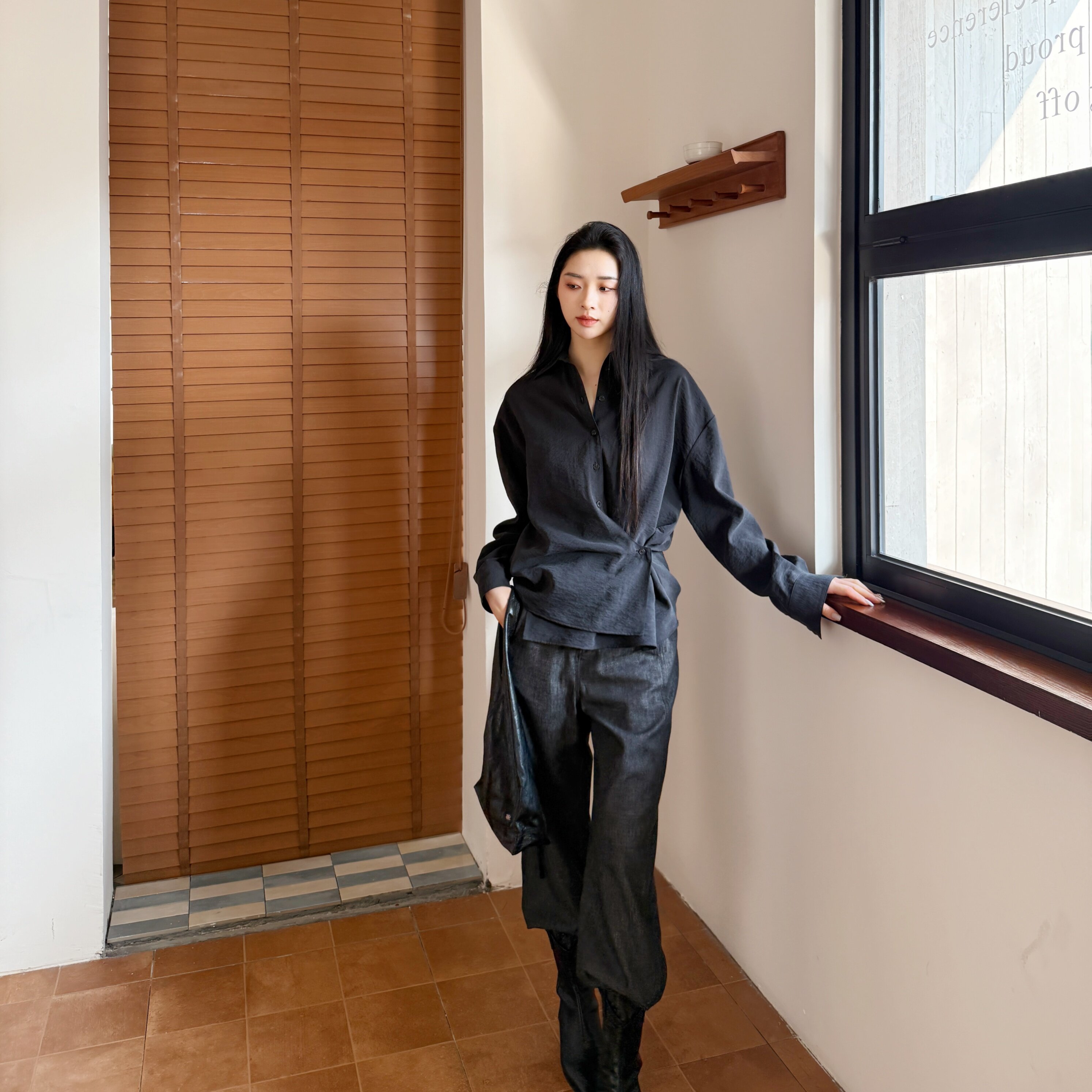 系腰极简通勤衬衫 设计款 MY6770 稀缺桑蚕丝·丝锦绉 沉川夜海