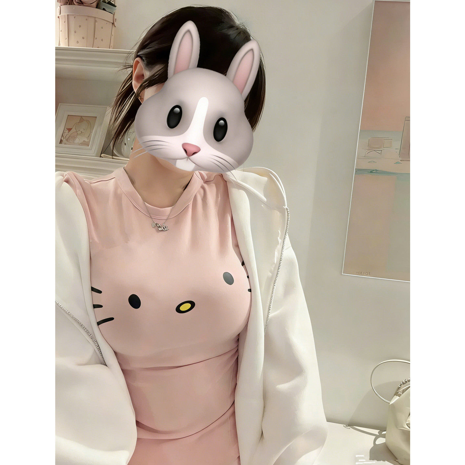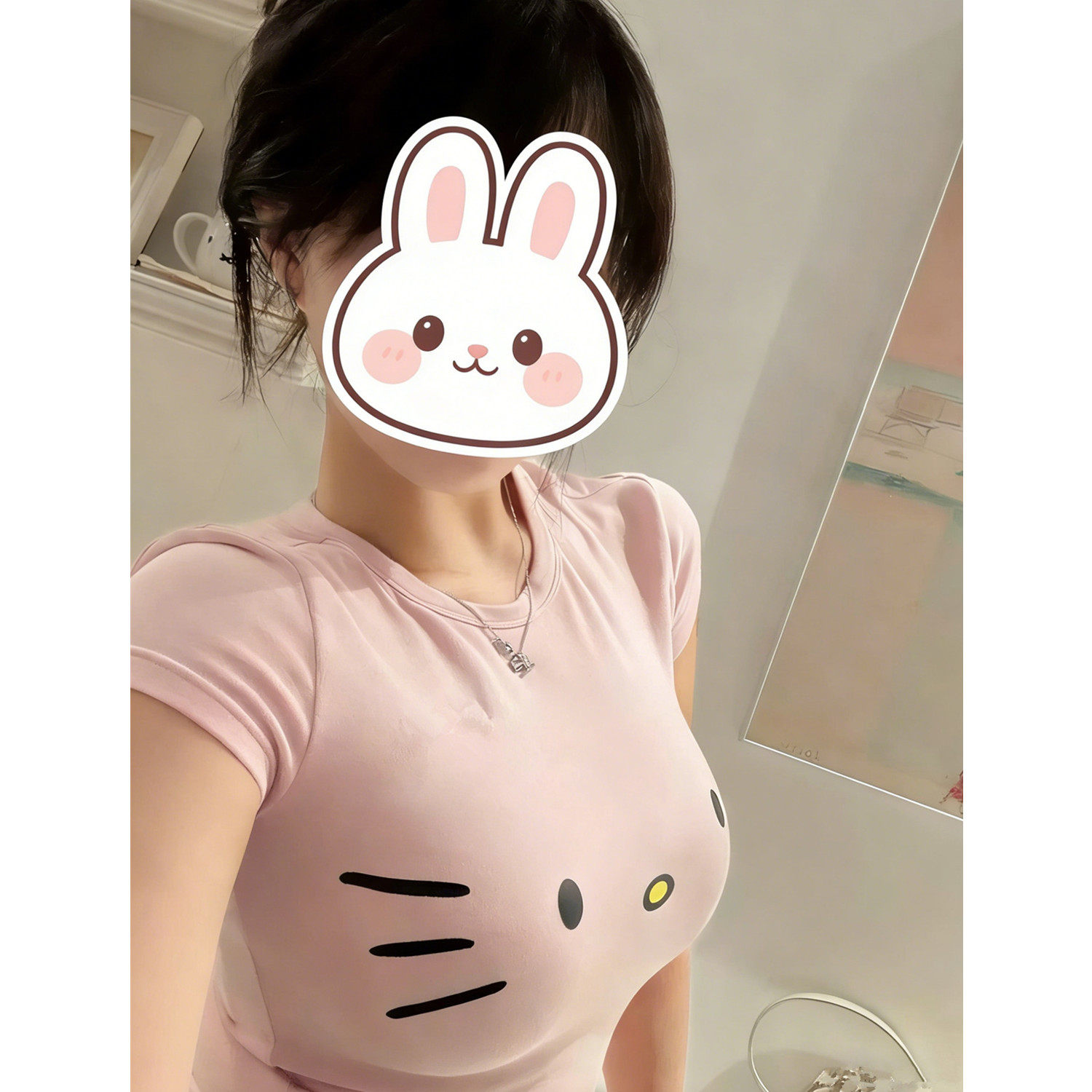 收腰显胸打底百搭上衣 修身 软糯少女感甜妹KT猫印花短袖 T恤女夏季