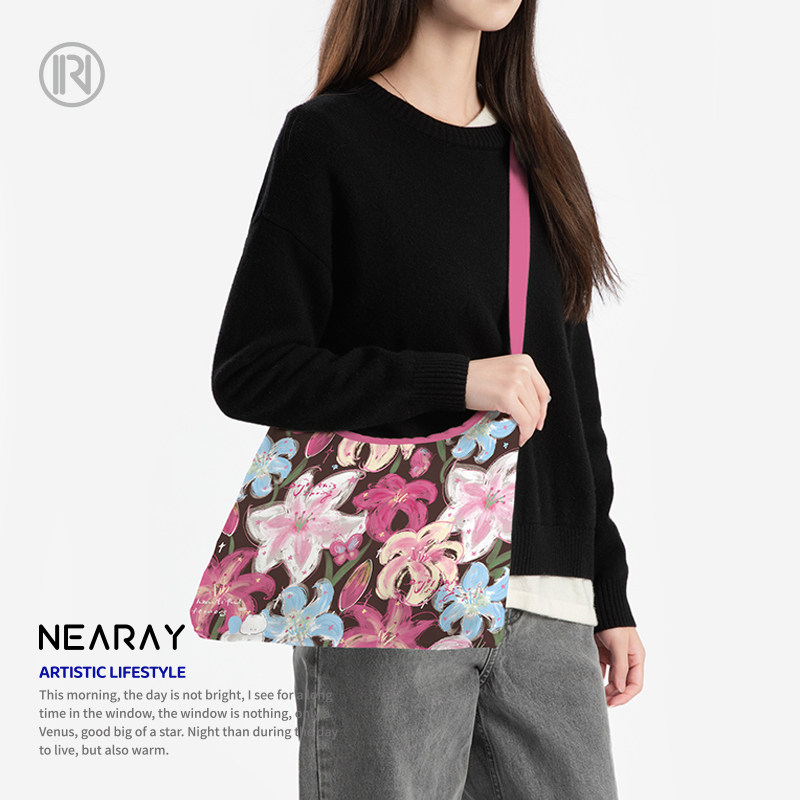 2026新款 碎花帆布包原创设计感单肩包通勤上课布袋高颜值包包Q366