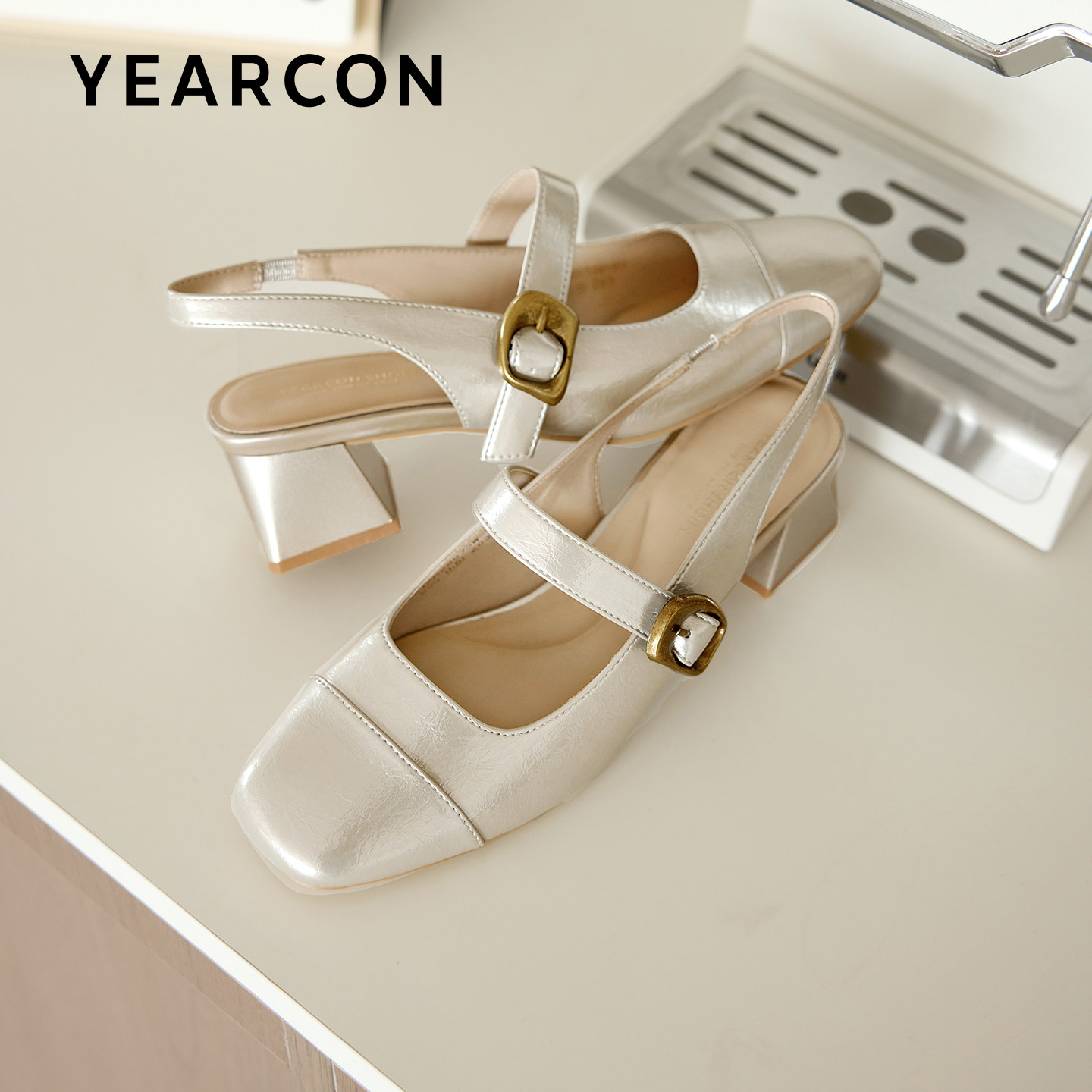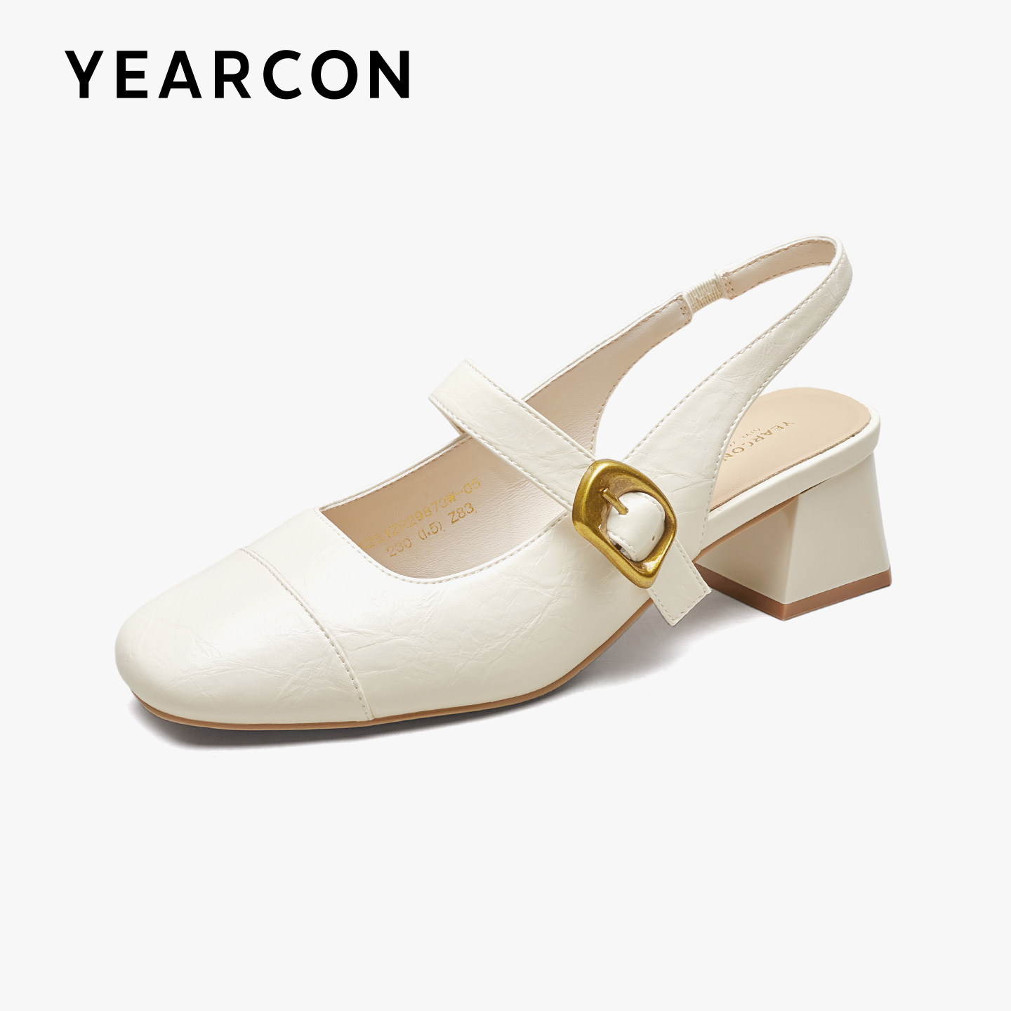复古一字扣包头高跟单鞋 法式 女2026春夏新款 意尔康粗跟玛丽珍凉鞋