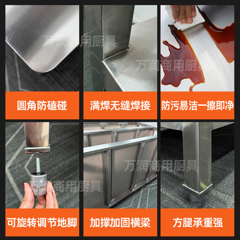 304不锈钢工作台商用厨房专用后厨切菜打包台焊接特厚操作台定制