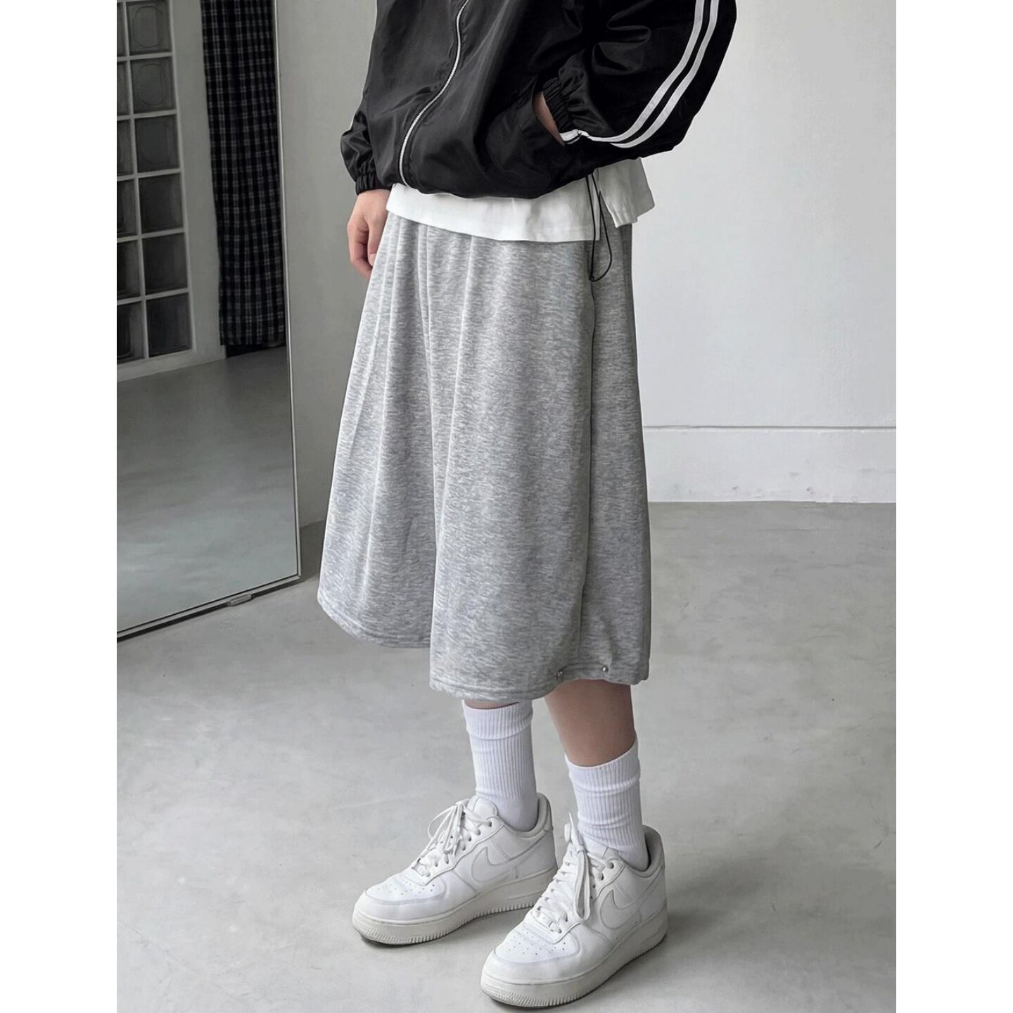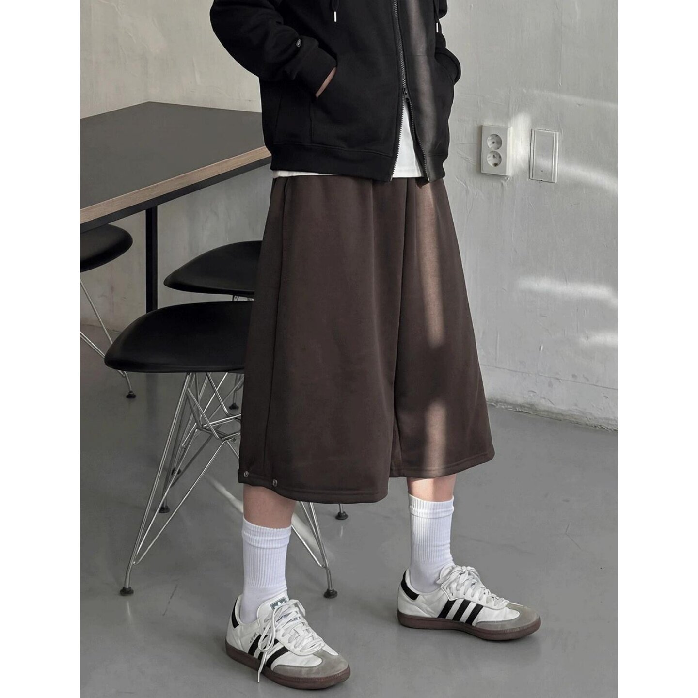 垂感休闲百搭 百慕大阔腿棉金属扣宽松运动短裤 MRDONG韩国代购 男装