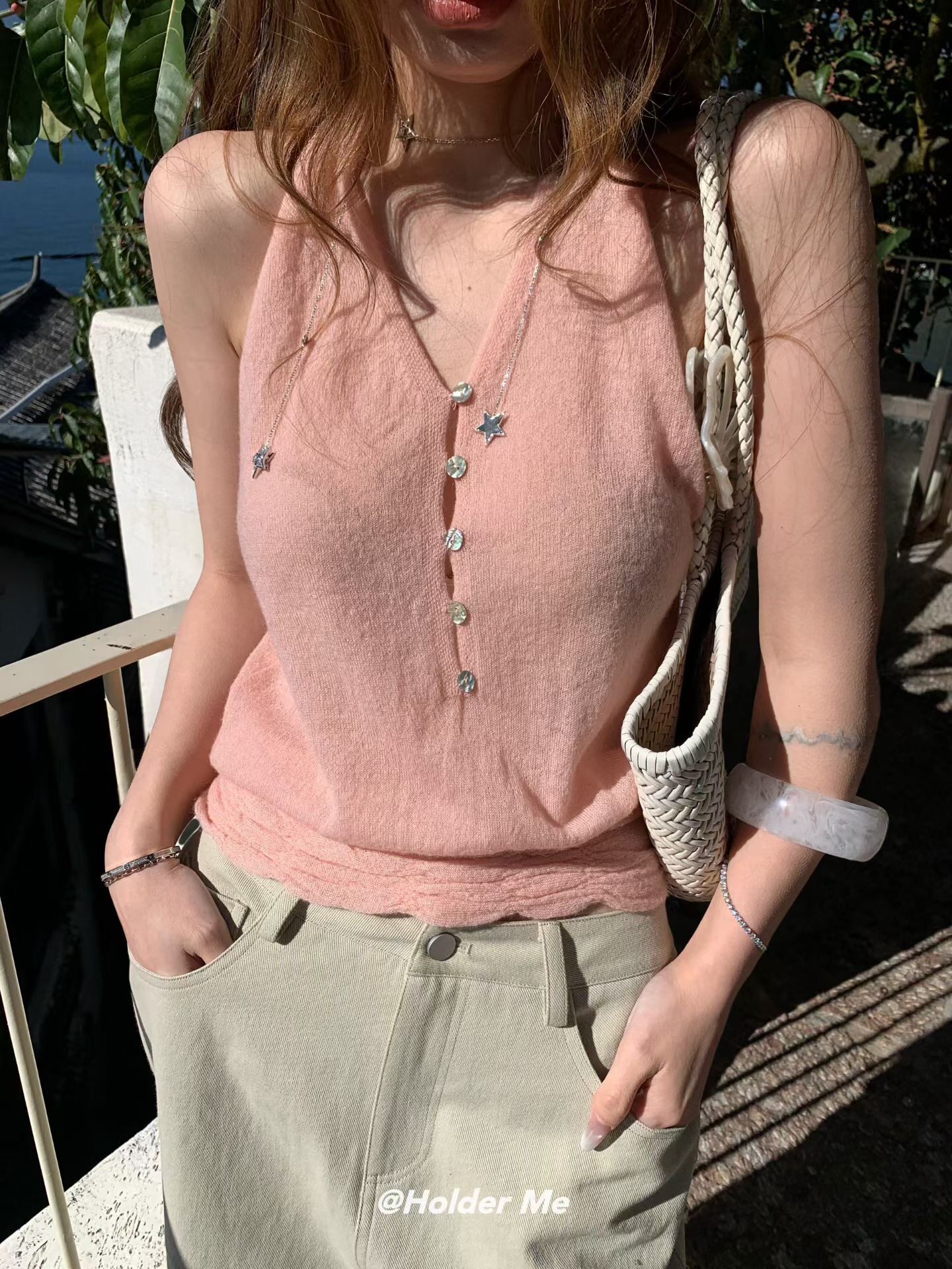 无袖 挂脖V领纽扣露背针织背心女 新款 上衣8020 2026夏季 HOLDER