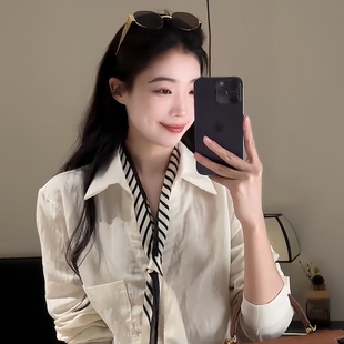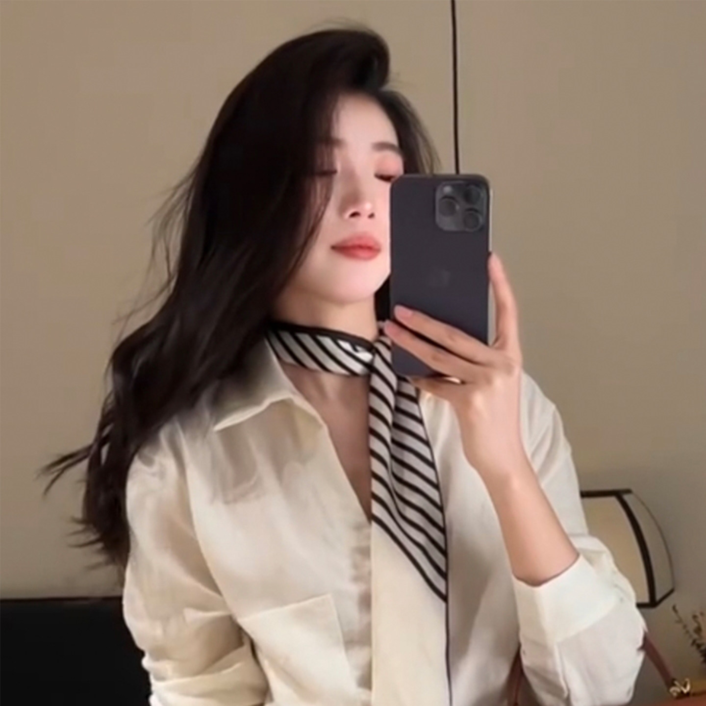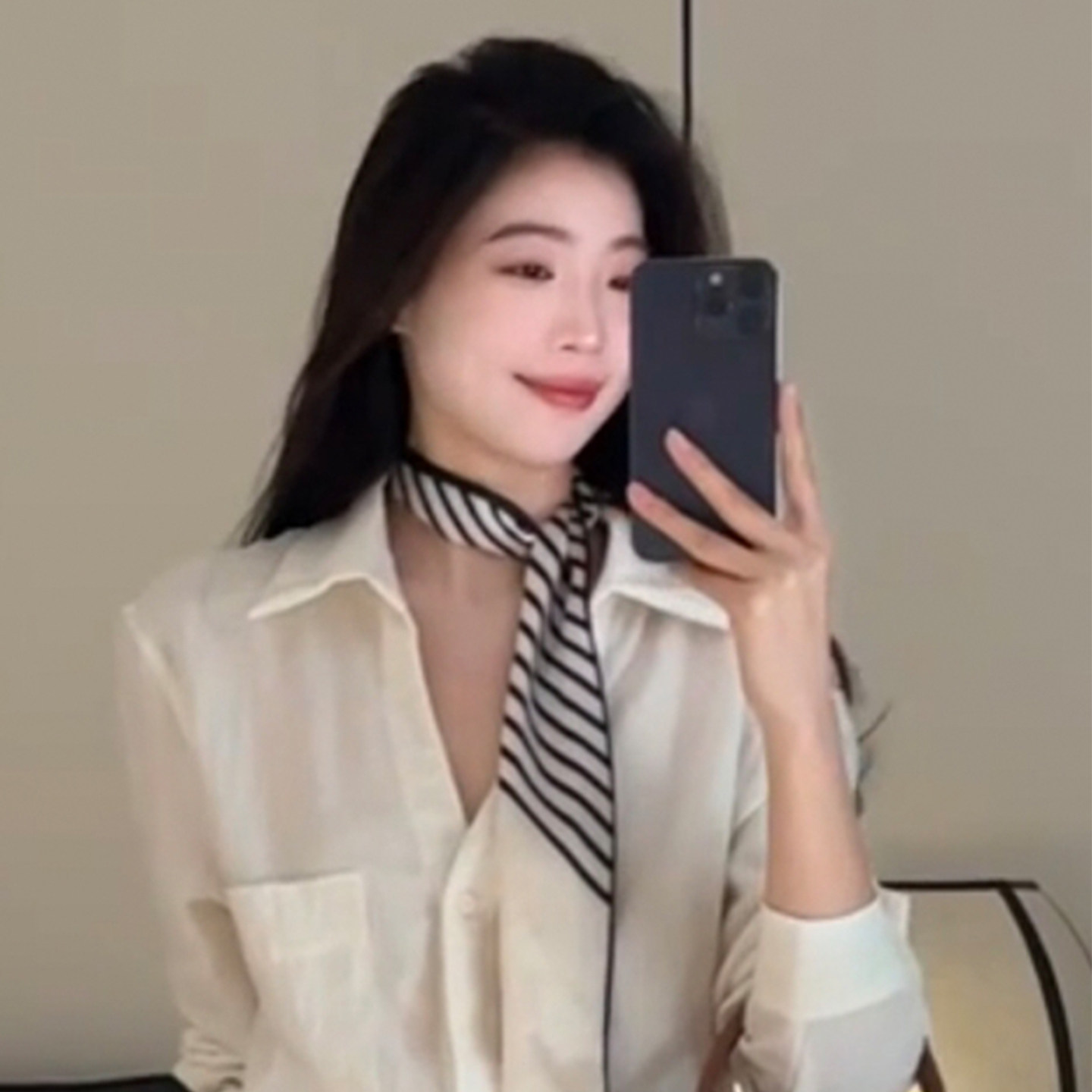 搭配高级感系脖子配饰 颈带长条围巾衬衫 法式 条纹丝巾女2026新款