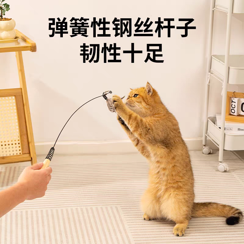 逗猫棒猫咪玩具自嗨解闷幼猫钢丝长杆羽毛小铃铛耐咬幼猫宠物玩具