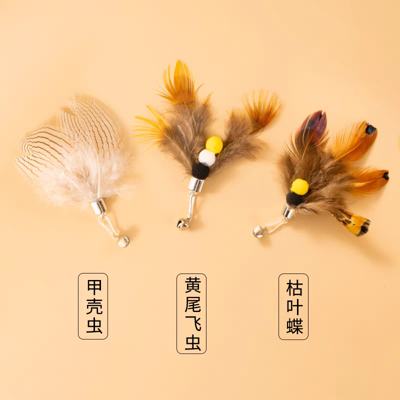 逗猫棒猫咪玩具竹蜻蜓自嗨解闷长杆钢丝羽毛带铃铛幼猫耐咬替换头