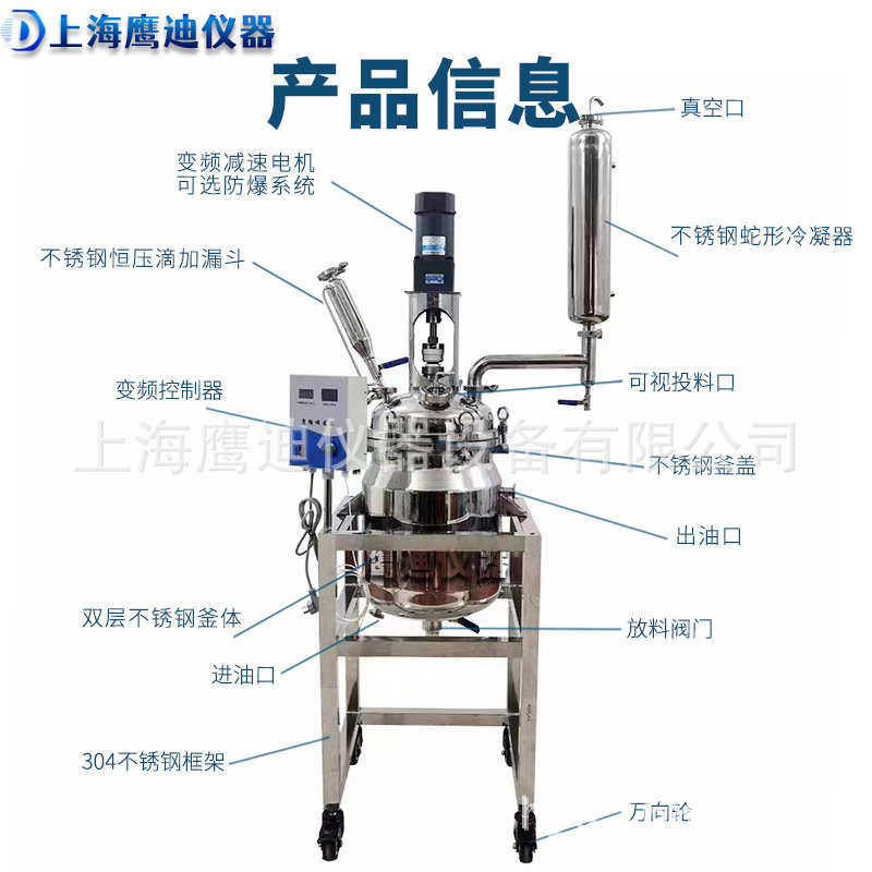 双层不锈钢反应釜搅拌电加热高温高压水热合成蒸馏真空夹套反应器