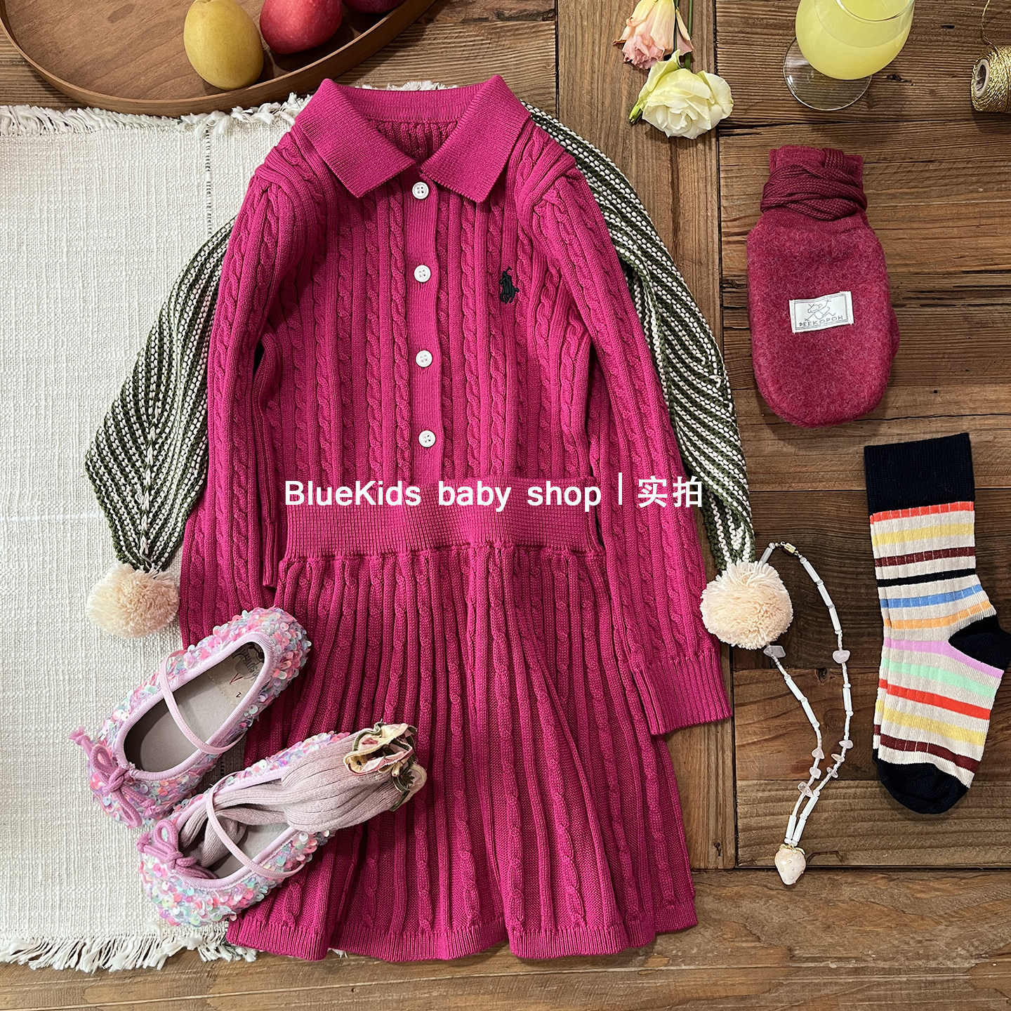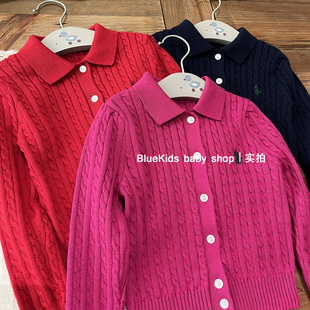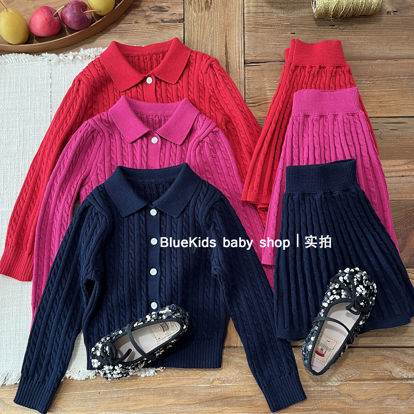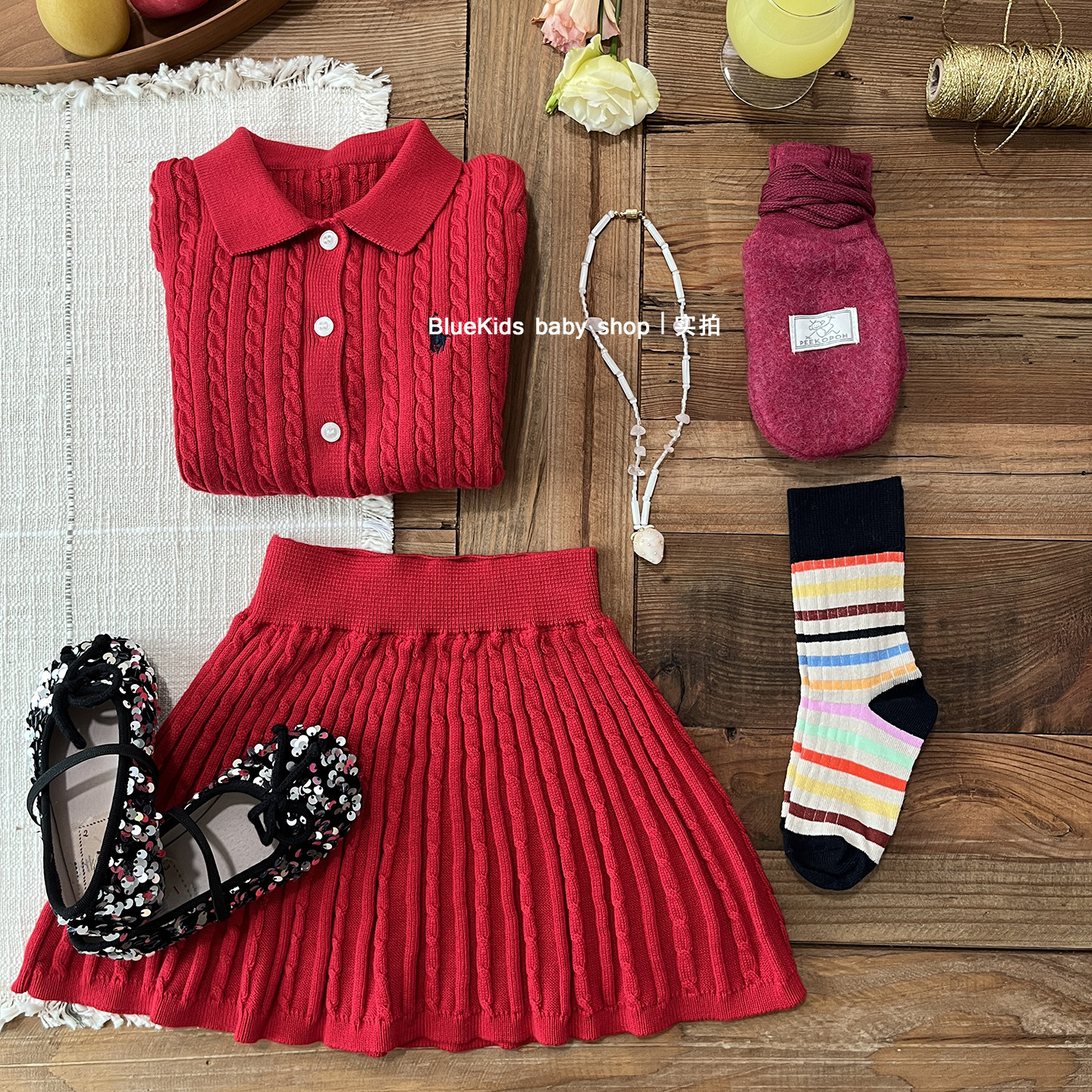 洋气百褶短裙套装 针织毛衣开衫 polo领女童纯棉麻花长袖 秋冬新款