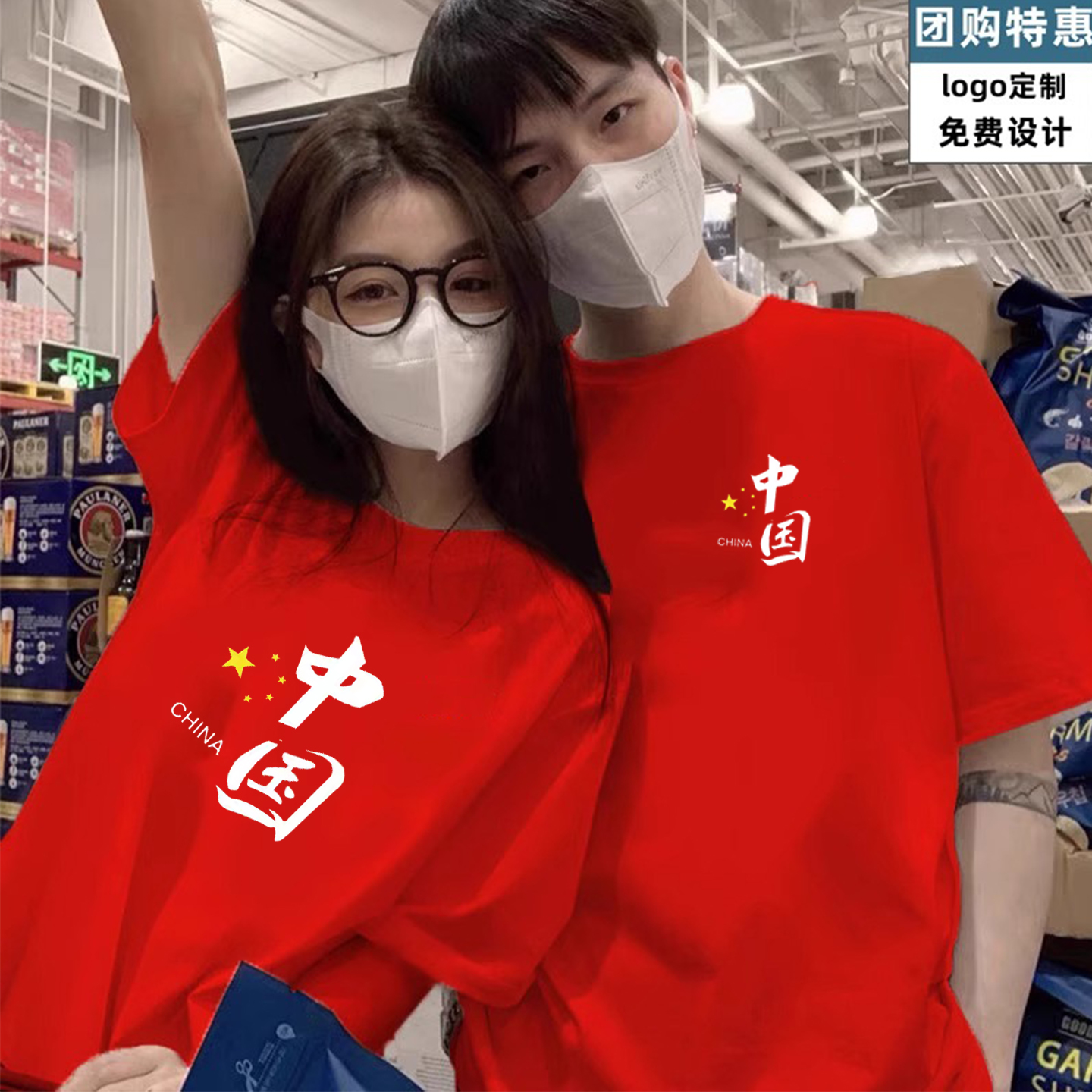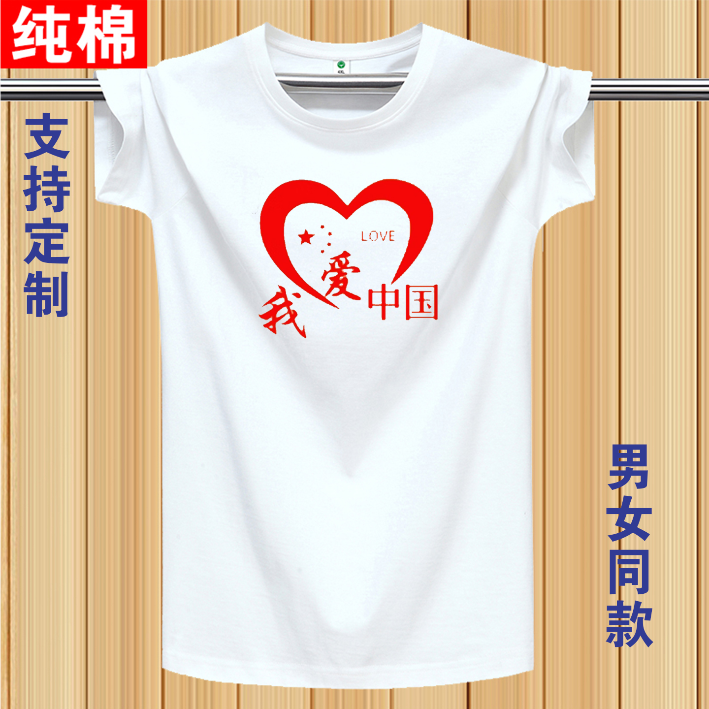 爱国t恤定制十一国庆节短袖 大合唱演出服红色我爱中国纯棉文化衫