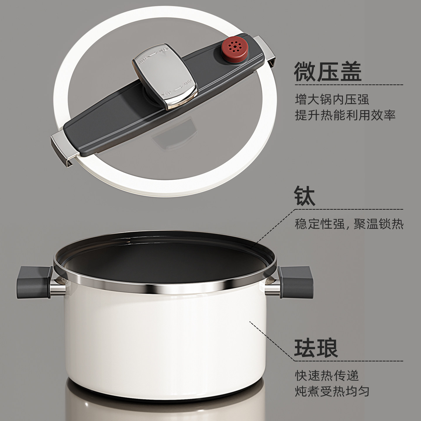 钛珐琅微压汤锅家用无涂层炖煮汤锅不粘双耳锅燃气灶电磁炉通用H