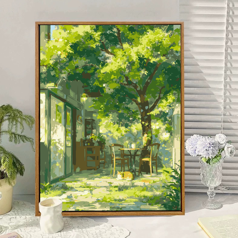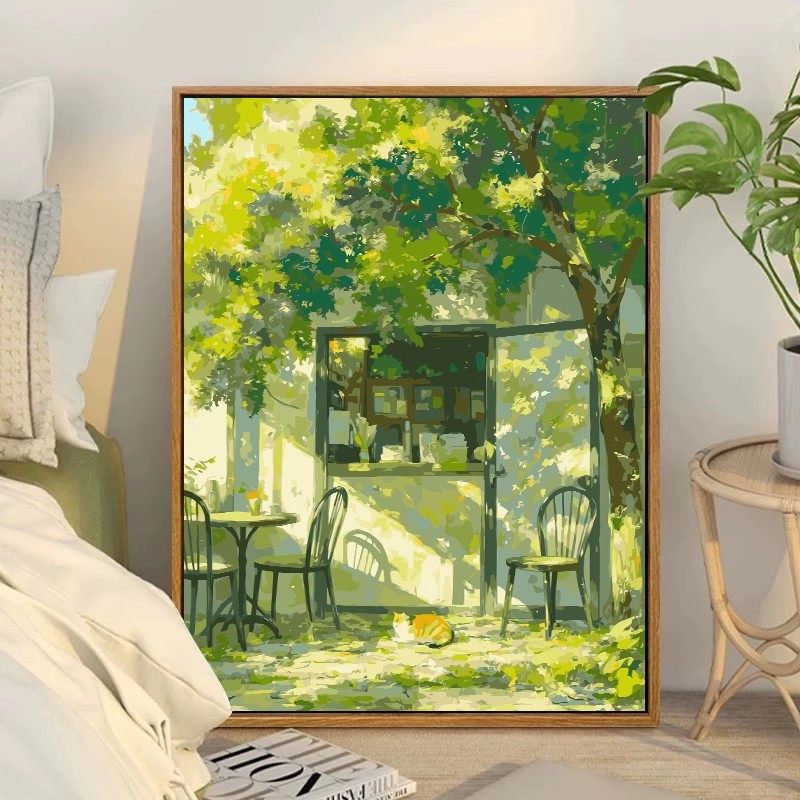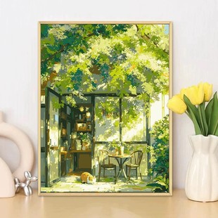 宫崎骏夏日小店绿色装 饰画成品仿油画风景唯美清新卧室客厅摆挂画