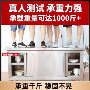 不锈钢工作台厨房操作台面储物柜切菜桌子带拉门案板商用专用烘焙