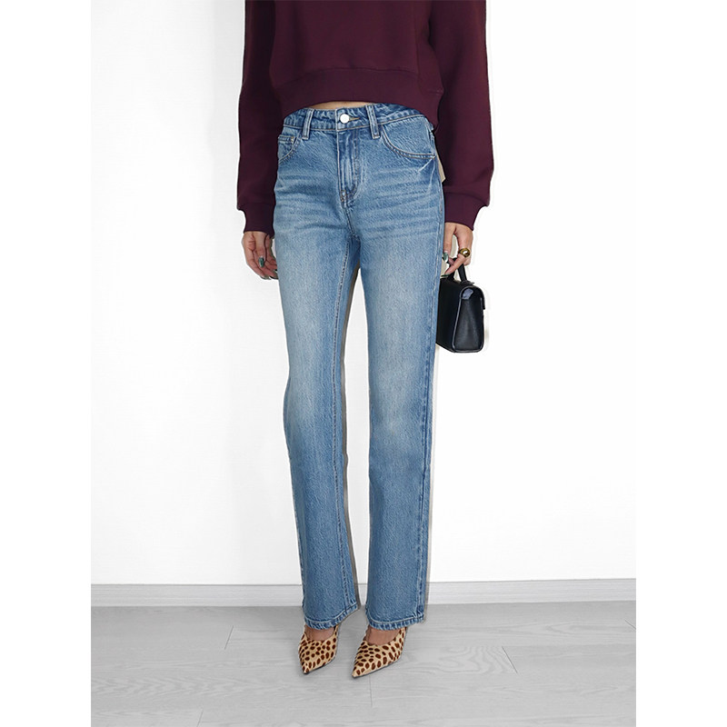 长裤 VanessaLab 女休闲裤 复古蓝色直筒牛仔裤 自留显瘦显腿直美式