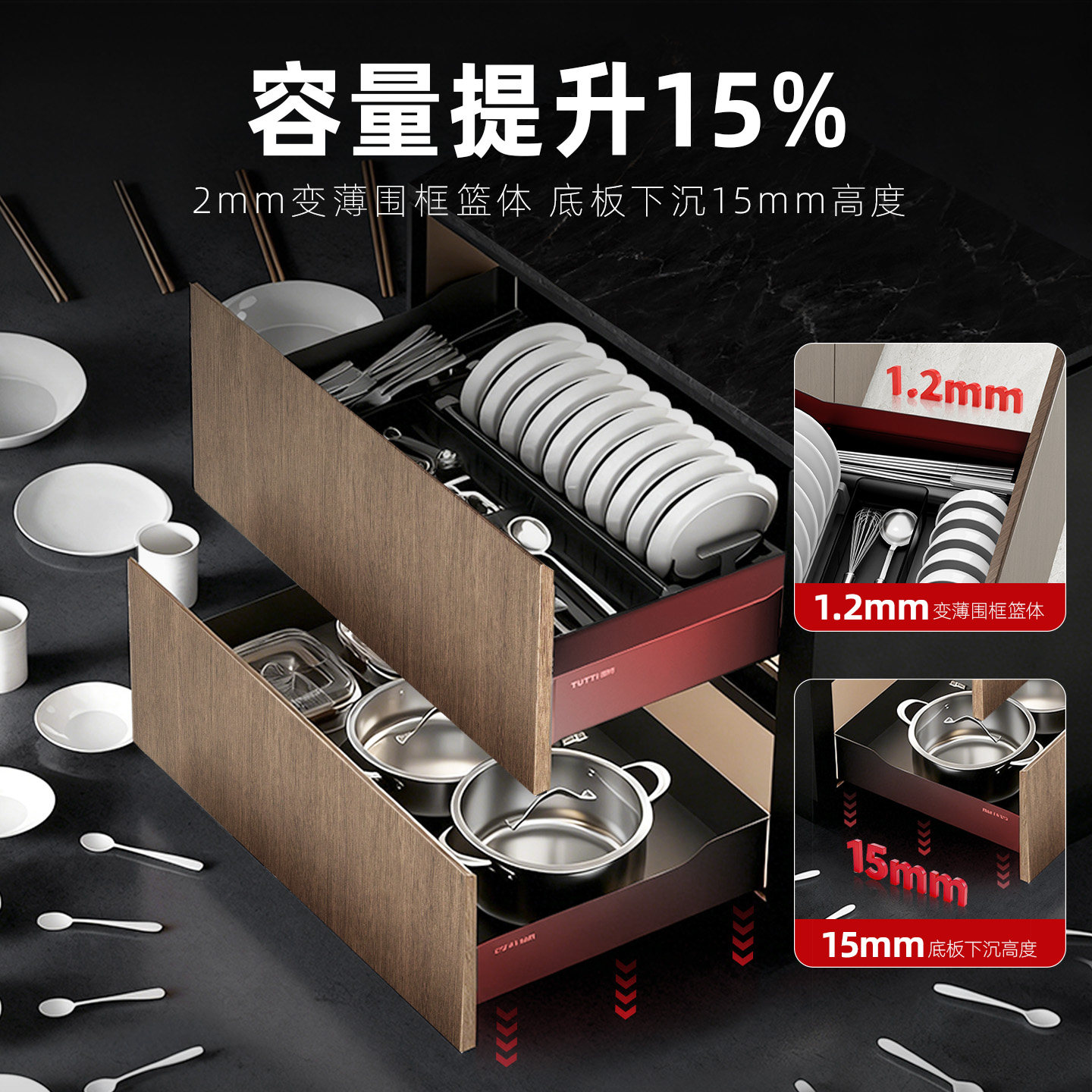 TUTTI图特拉篮厨房橱柜拉篮抽屉式 双层大容量碗碟架收纳碗碟拉篮
