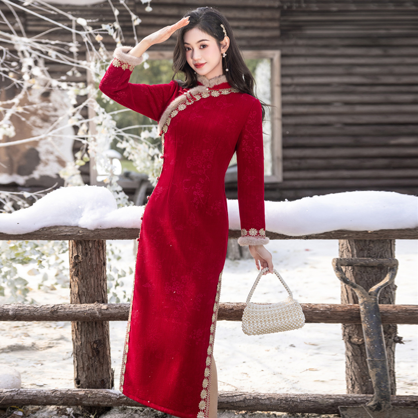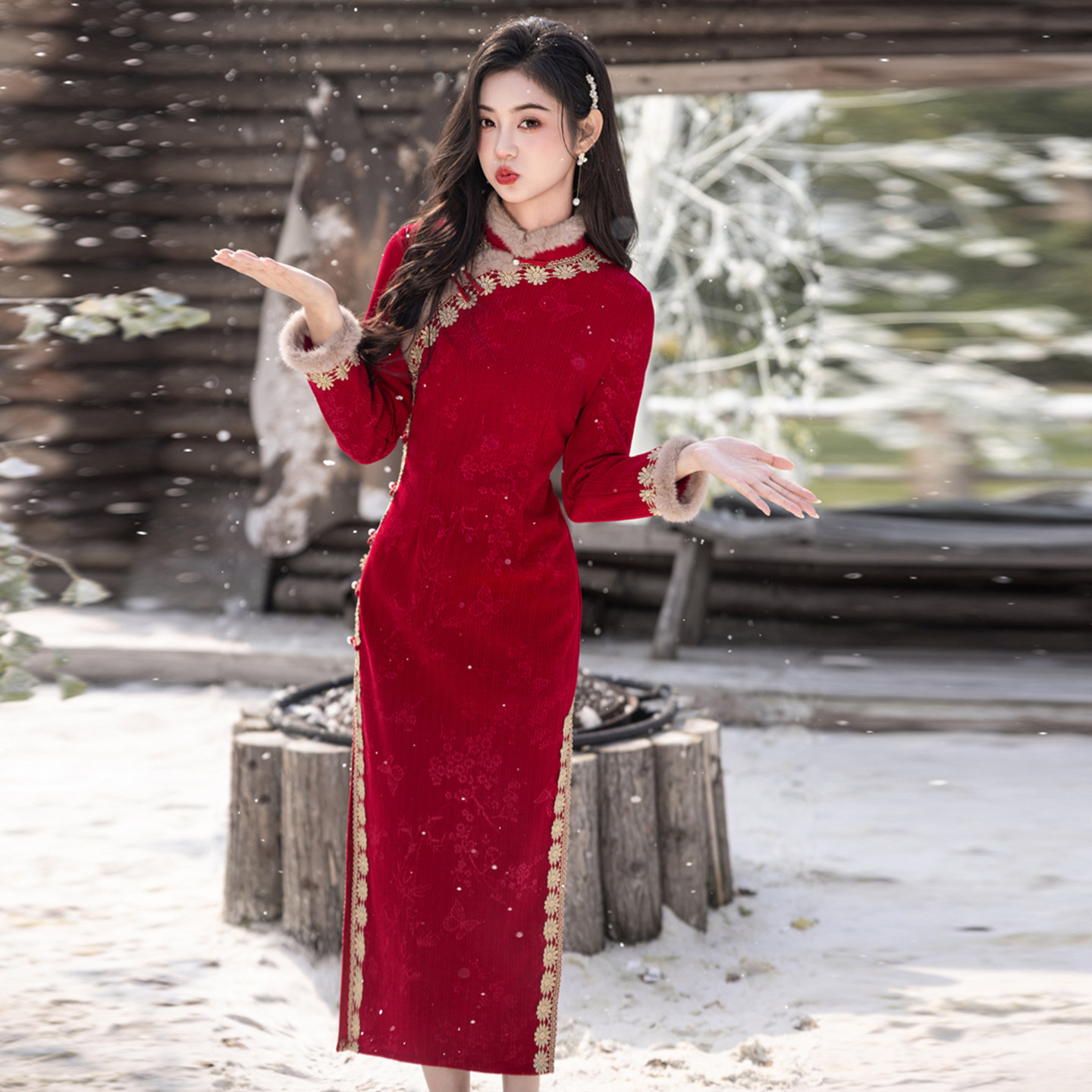 连衣裙收腰显瘦11 新中式 少女长款 加绒加厚年轻款 奥黛旗袍冬季