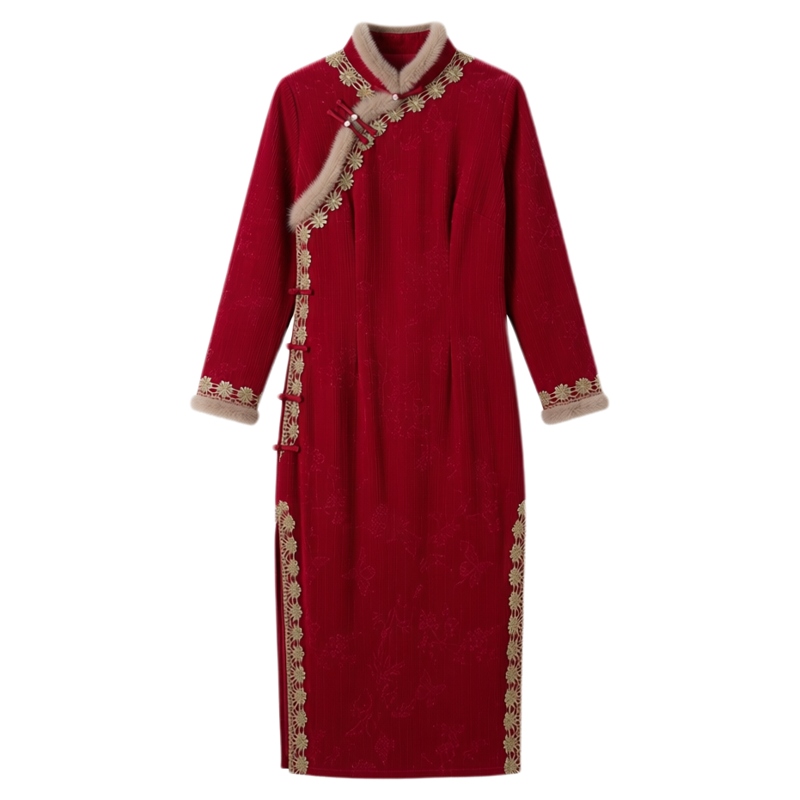 新中式 IEF 2025秋冬新款 小个子专属 优雅风加绒旗袍裙 爱依服