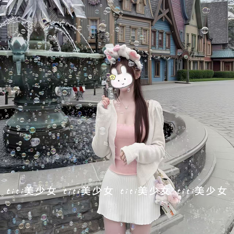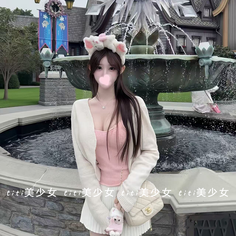 TiTi美少女 长袖 性感针织小吊带修身 针织开衫 外套 打底背心