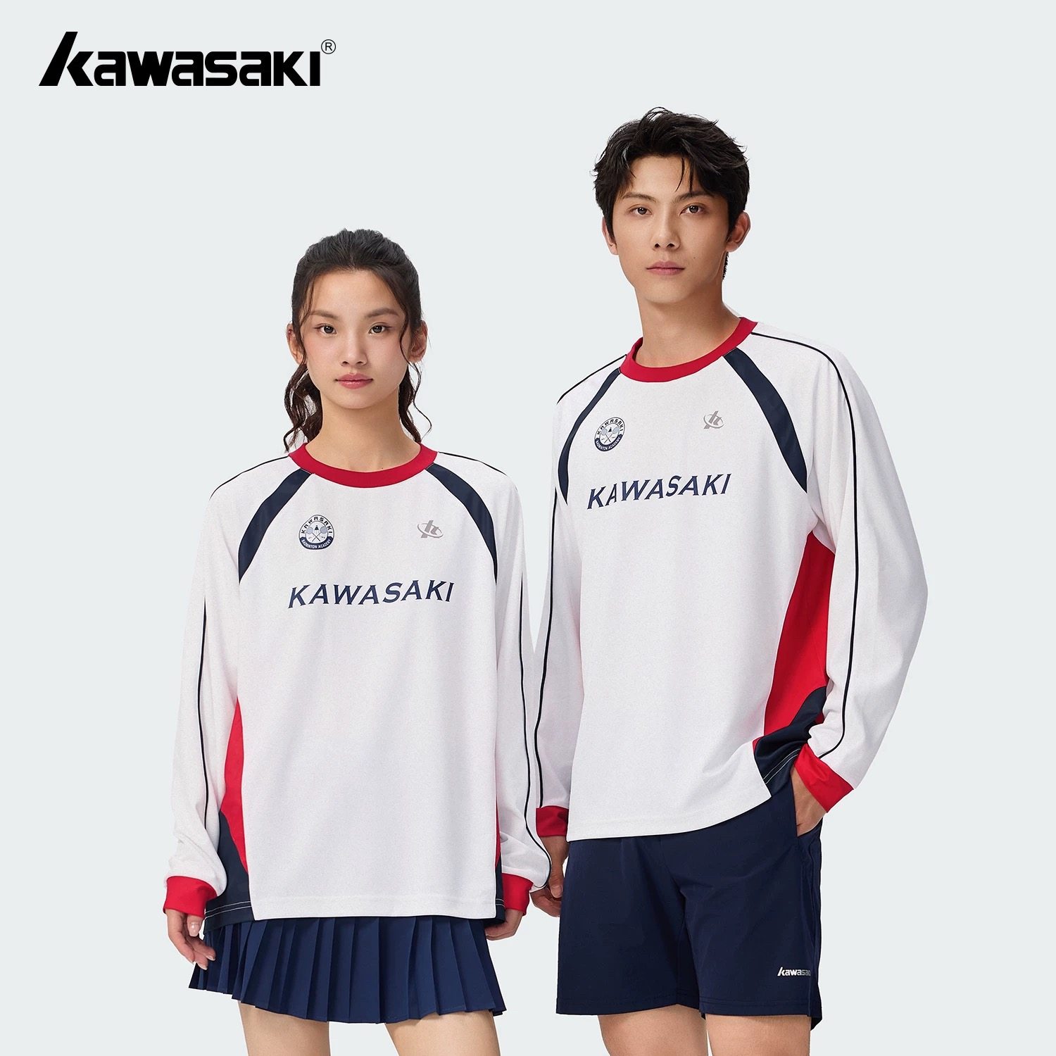 川崎羽毛球服长袖 上衣男女速干运动T恤透气网球服秋冬比赛训练服
