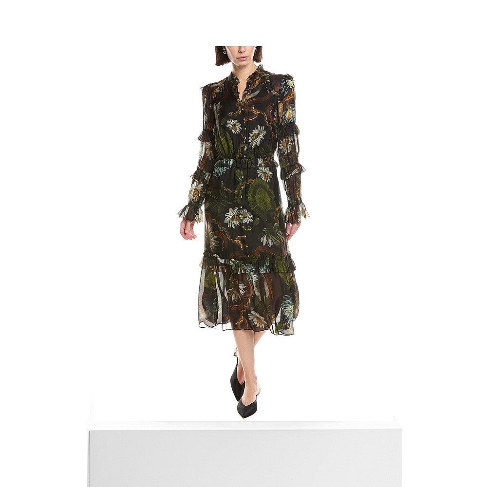 撞色连衣裙 复古丝绒荡领显瘦中式 致卡萝自制 璞玉桃花簪