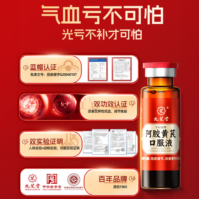 九芝堂阿胶黄芪口服液浆补气血免疫女生贫血补铁官方正品 礼品礼盒