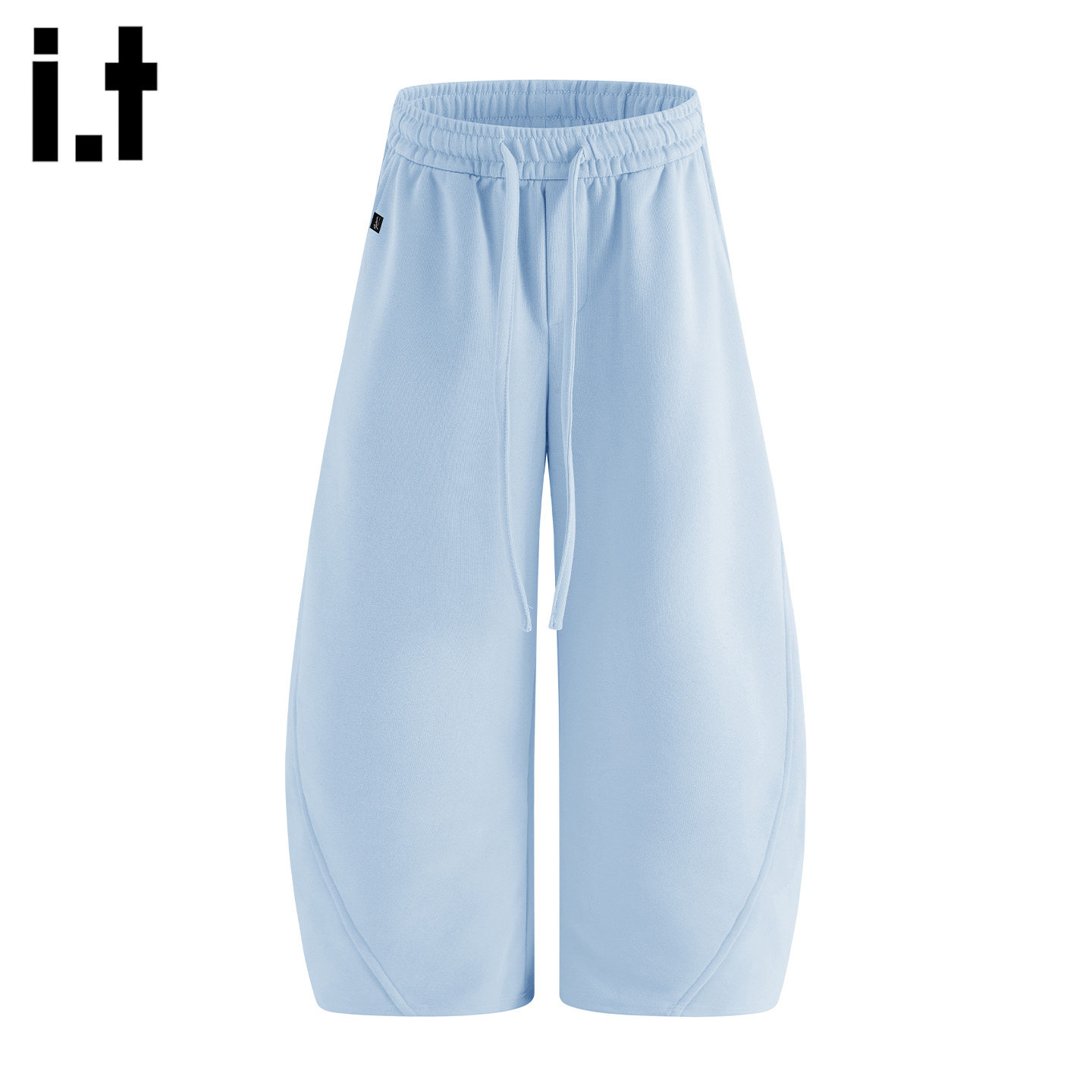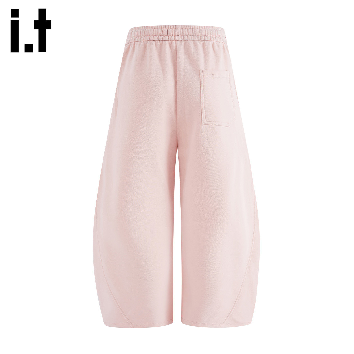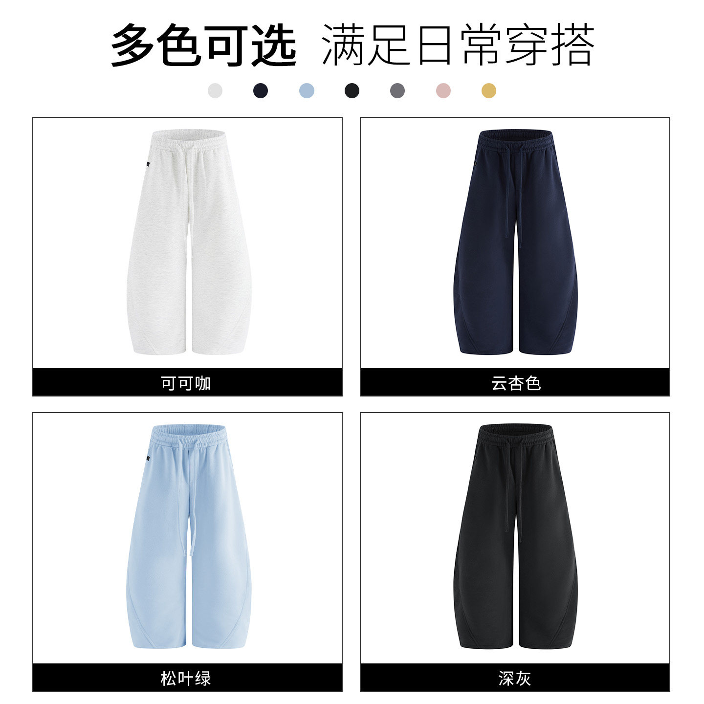 休闲弯刀裤 男女2025秋冬季 FIVECM粉色抽绳松紧腰阔腿卫裤 5cm