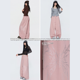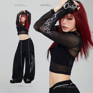 蝴蝶嘻哈运动裤 CBXLAB街舞潮牌黑色碎钻高街套装 爵士辣妹网纱长袖