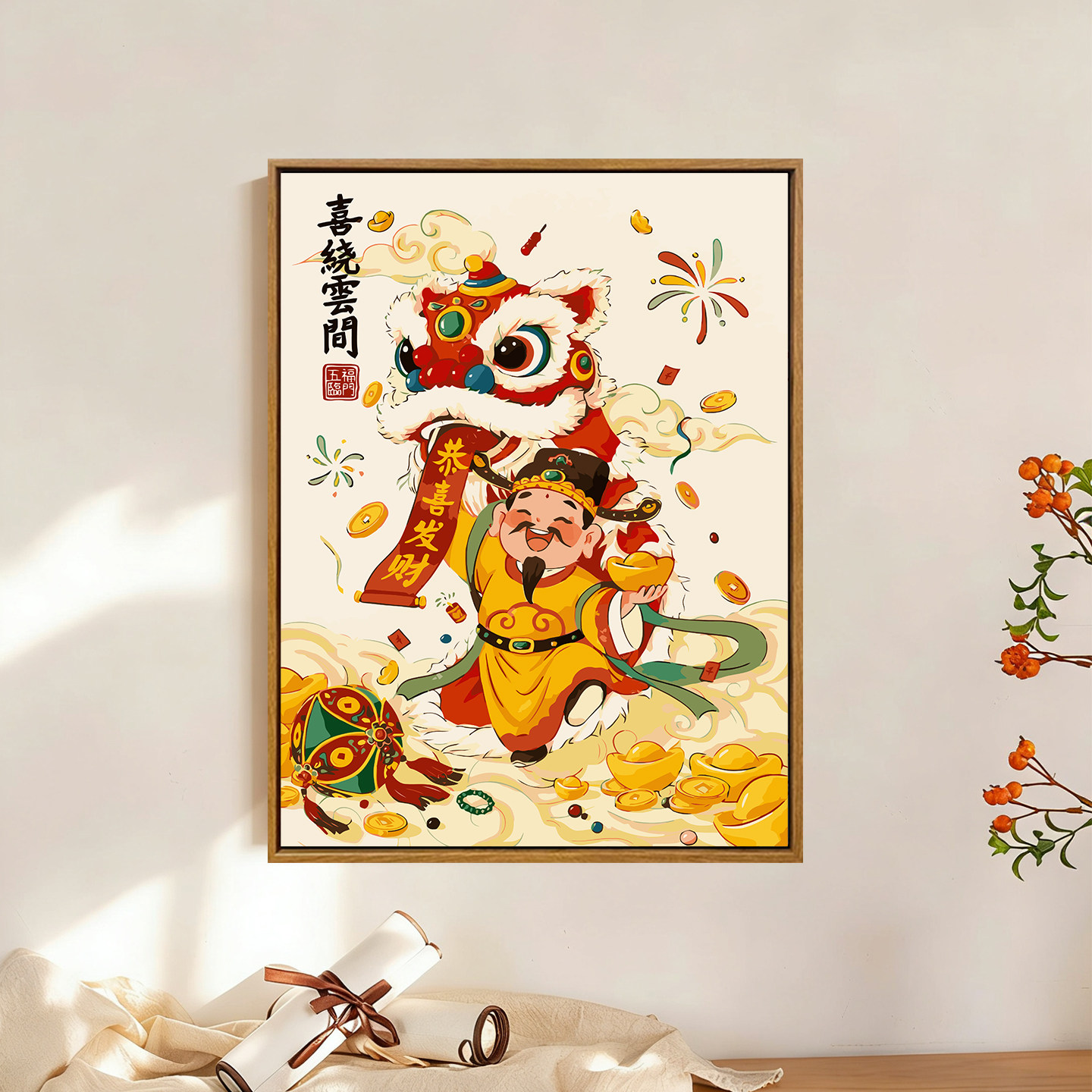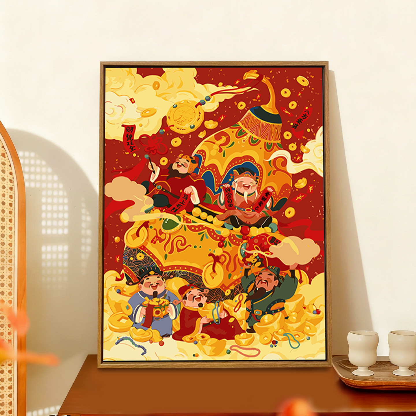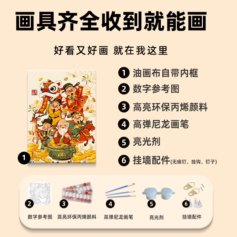 五路财神迎新年数字油画diy填充填色手工绘2026祝福丙烯装 饰挂画