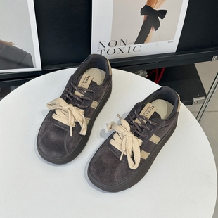 带复古绒面娃娃头德训鞋 女2025年超火双鞋 灰色厚底摇摇鞋 秋冬爆款