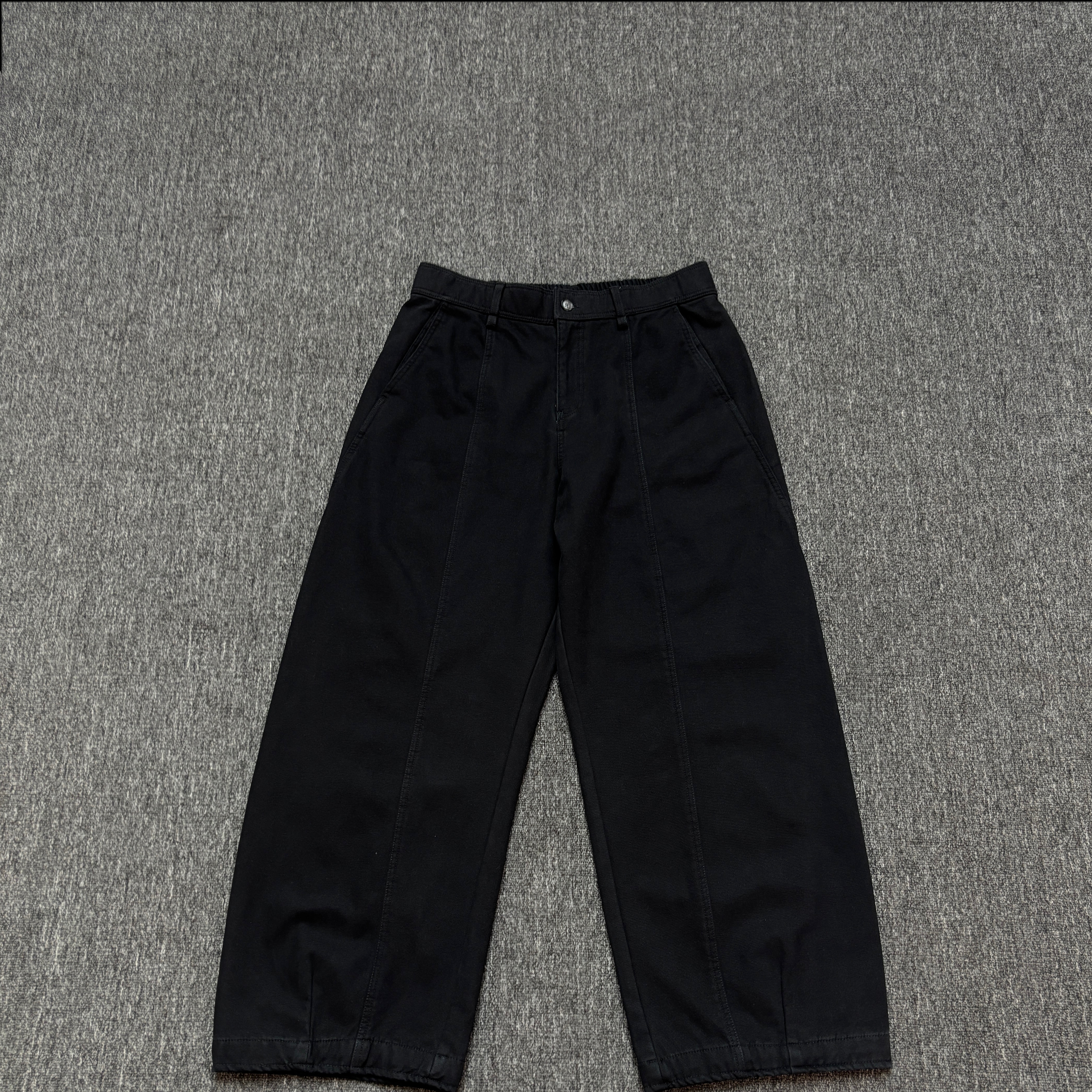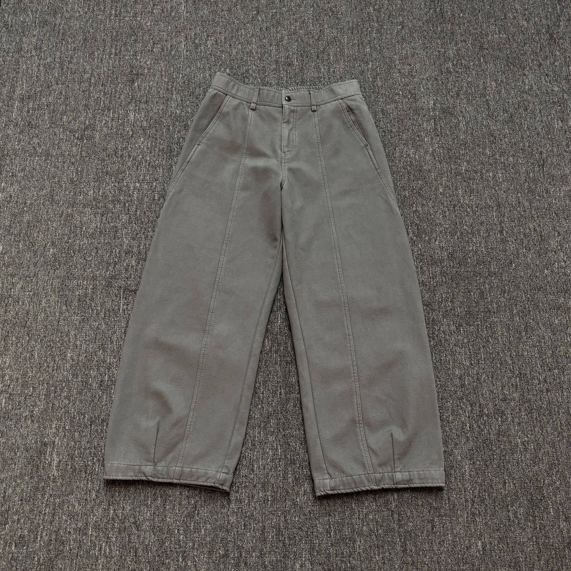 男新款 冬季 加厚立体剪裁半松紧腰宽松长裤 纯棉加绒直筒休闲裤
