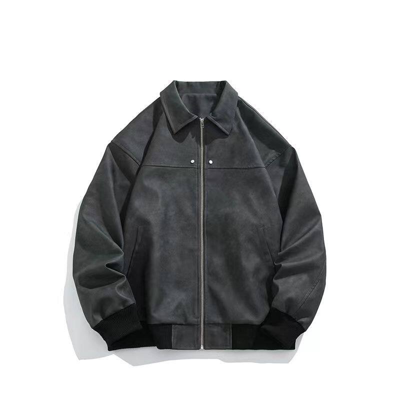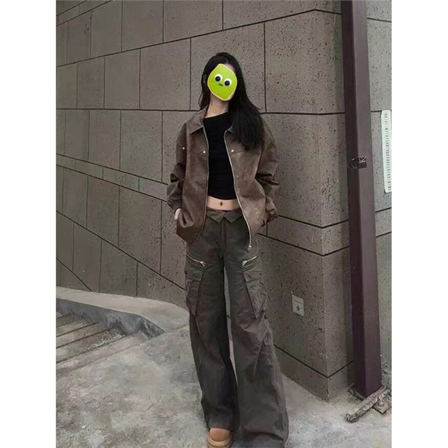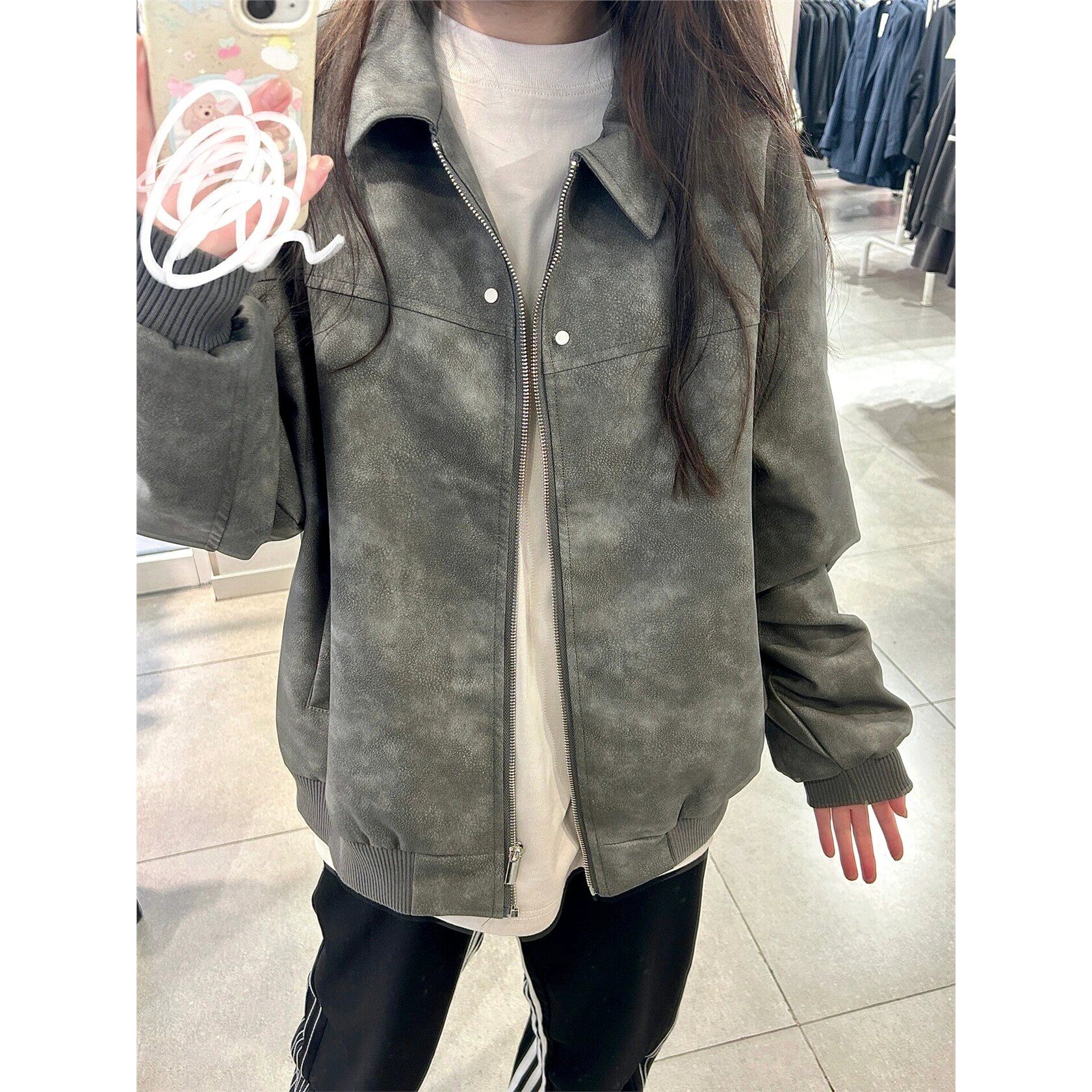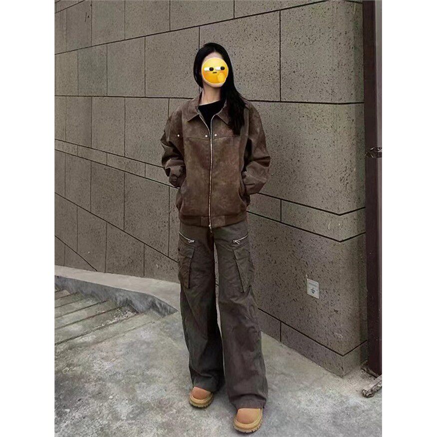 美式 复古棕色翻领皮衣外套女美拉德高级感麂皮绒情侣夹克百搭机车